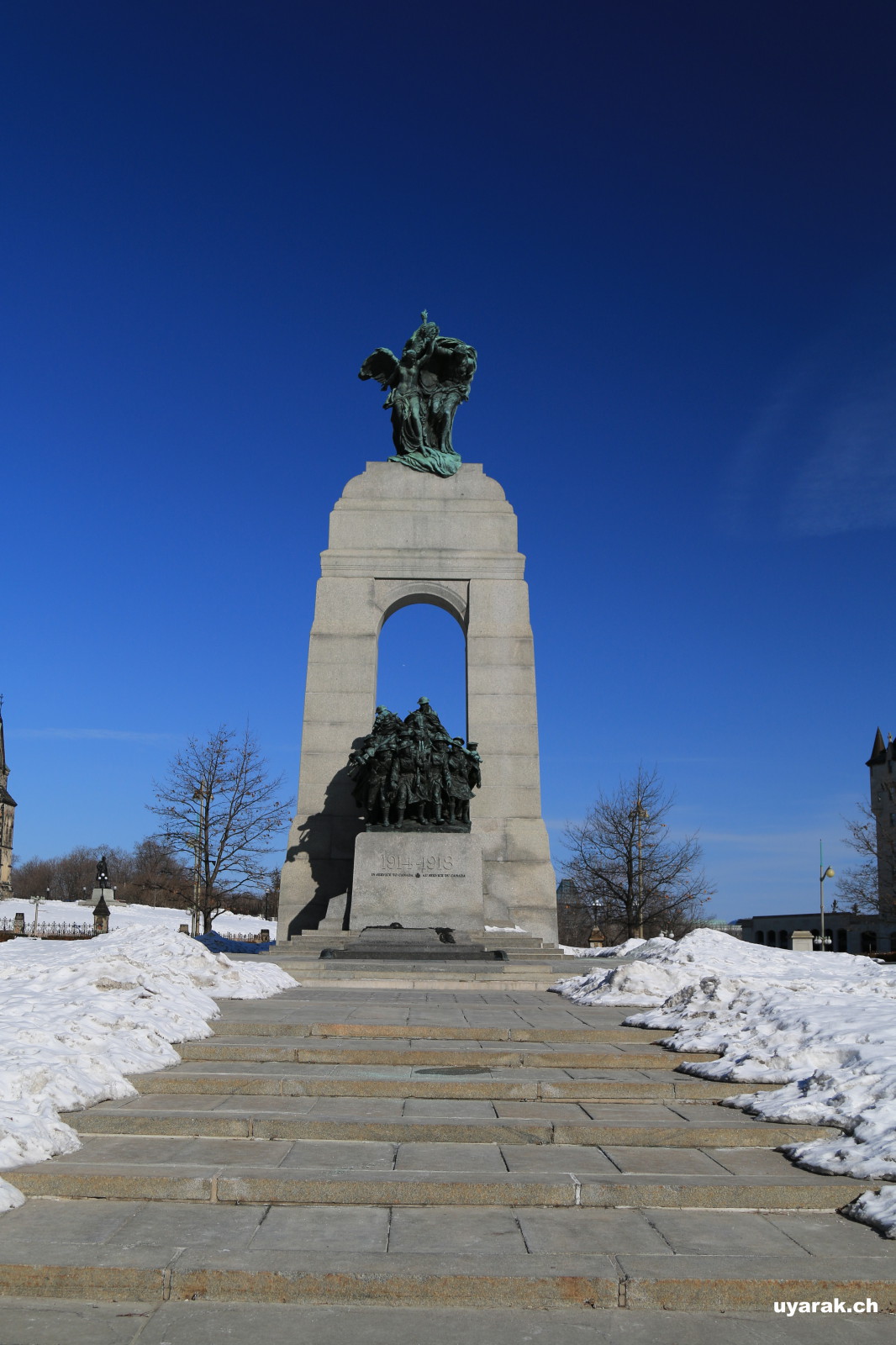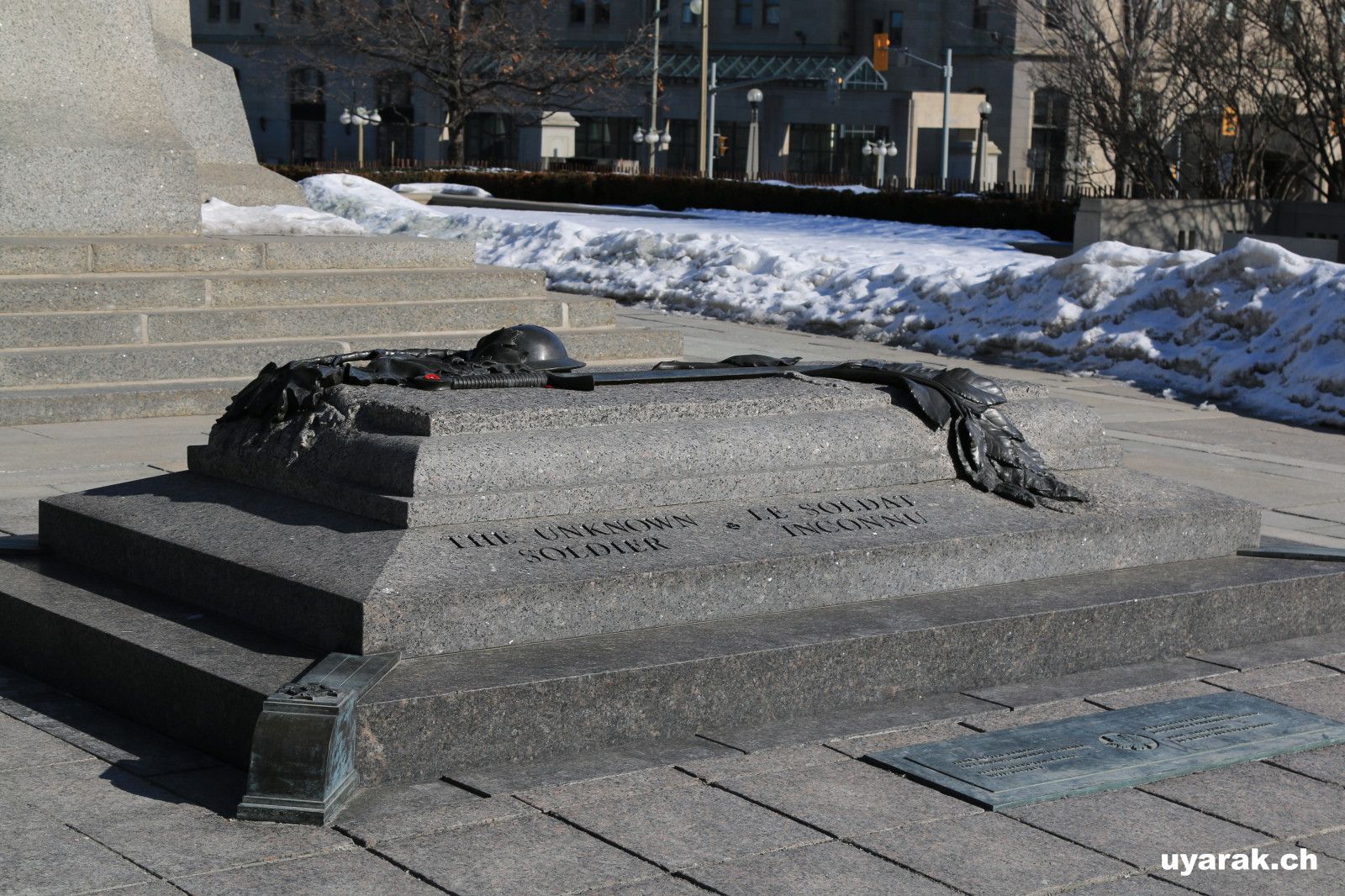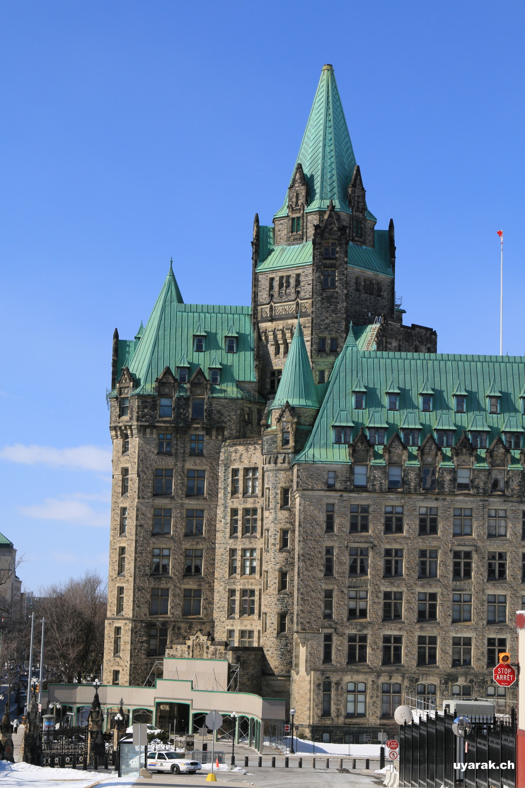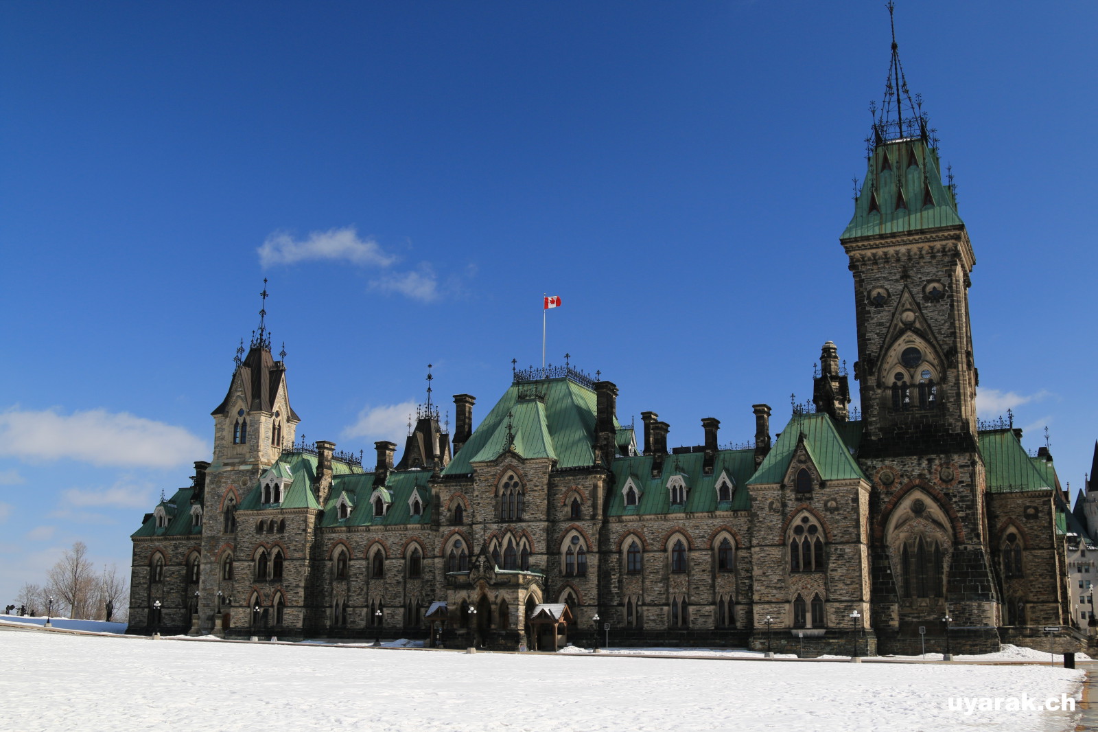 Am Sonntagmorgen scheint die Sonne direkt in unser Zimmer und wir freuen uns auf einen ausgiebigen Spaziergang durch die Stadt. Mit der Kamera ausgerüstet verlassen wir das Hotel und steuern als erstes das Grab des unbekannten Soldaten schräg vis-à-vis von unserem Hotel an. Weiter geht es zum Parliament Hill mit dem kanadischen Parlament und dem Peace Tower. Schnell merken wir aber, dass fotografieren bei diesen Temperaturen nicht so viel Spass macht, da einem die Finger fast abfrieren. Ausserdem hatte Fränzi zu hause aus nicht ganz nachvollziehbaren Gründen beschlossen, alle ihre Thermo-Unterwäsche im Fahrzeug zu verstauen. Daher kaufen wir für sie erstmal neue Strumpfhosen aus Merino-Wolle und schlendern anschliessend durch das gut geheizte Rideau Centre. Am Nachmittag machen wir einen Spaziergang entlang des zugefrorenen Rideau Kanals. Leider ist die Eisdecke bereits an vielen Stellen eingebrochen, so dass die 8 km lange Eislaufstrecke geschlossen ist. Schade, Schlittschuhlaufen auf der weltgrössten Einsbahn hätte bestimmt Spass gemacht. Aber ist vielleicht besser so, denn neben den Eishockey-begeisterten Kanadiern hätten wir bestimmt keine gute Falle gemacht.