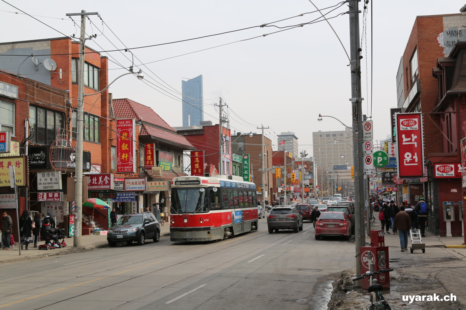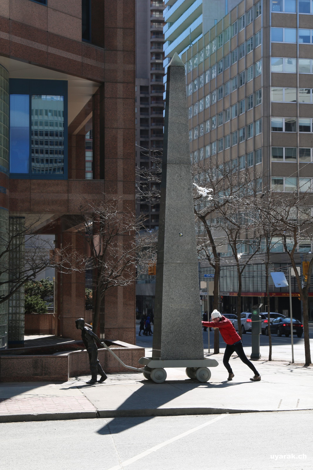 Die drei Tage in Toronto geniessen wir in vollen Zügen. Wir erkunden die Stadt zu Fuss, aber mit Hilfe einer Städterundfahrt Karte worauf alle Sehenswürdigkeiten eingezeichnet und beschrieben sind. Es gibt genug an Faszination für uns zwei Rheintaler, denn Leute verschiedenster Nationalitäten drängen sich auf der Strasse an uns vorbei. Nur dies allein, wie unterschiedlich sie sich kleiden und frisieren ist sehenswert. Wir zwei Pannenbummler eingepackt in mehrere Jackenschichten inkl. einem dicken Schaal, Kappe und Handschuhe bemerken schnell, dass die Kanadier wohl ein etwas anderes Kältegefühl haben als wir es uns gewohnt sind. Immer wieder sehen wir Männer mit kurzen Hosen oder sogar im T-Shirt und auch Frauen und Kinder wagen sich bei eisigen Temparaturen auf die Strasse ohne ihre Jacken zu schliessen.
