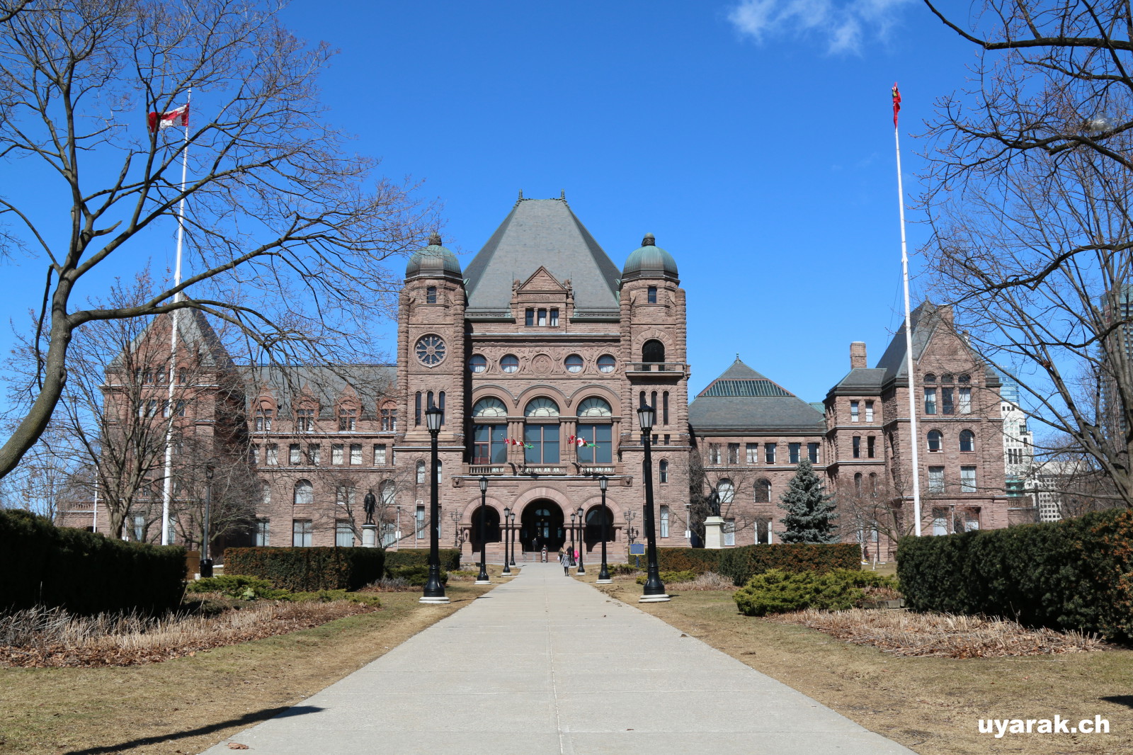 Die restlichen Stunden des Tages verbringen wir erneut auf den Strassen Torontos. Wir schlendern an prachtvollen Kirchen vorbei, durchqueren "Old Town Toronto" und gelangen so an eine alte Destillerie "Gooderham and Worts Distillery" welche die grösste Ansammlung von Industriebauten aus der viktorianischen Zeit in Nordamerika besitzt. Das Gelände wurde ab 1832 von Gooderham and Worts bebaut, einem Unternehmen, welches in den späten 1860er Jahren zur größten Destillerie der Welt aufstieg. Nach einigen Fotos wagen wir uns durch die bunten Strassen von Chinatown, besichtigen das Regierungsgebäude und die Universität Torontos welche die grösste Uni von ganz Kanada ist. Die Gebäude der Universität wurden 1858 bis 1929 gebaut und der ganze Campus schaut so romantisch und harmonisch aus, dass man am Liebsten gleich mit einem Studium beginnen würde (ach was... es gibt nichts besseres als Reisen :-) ).