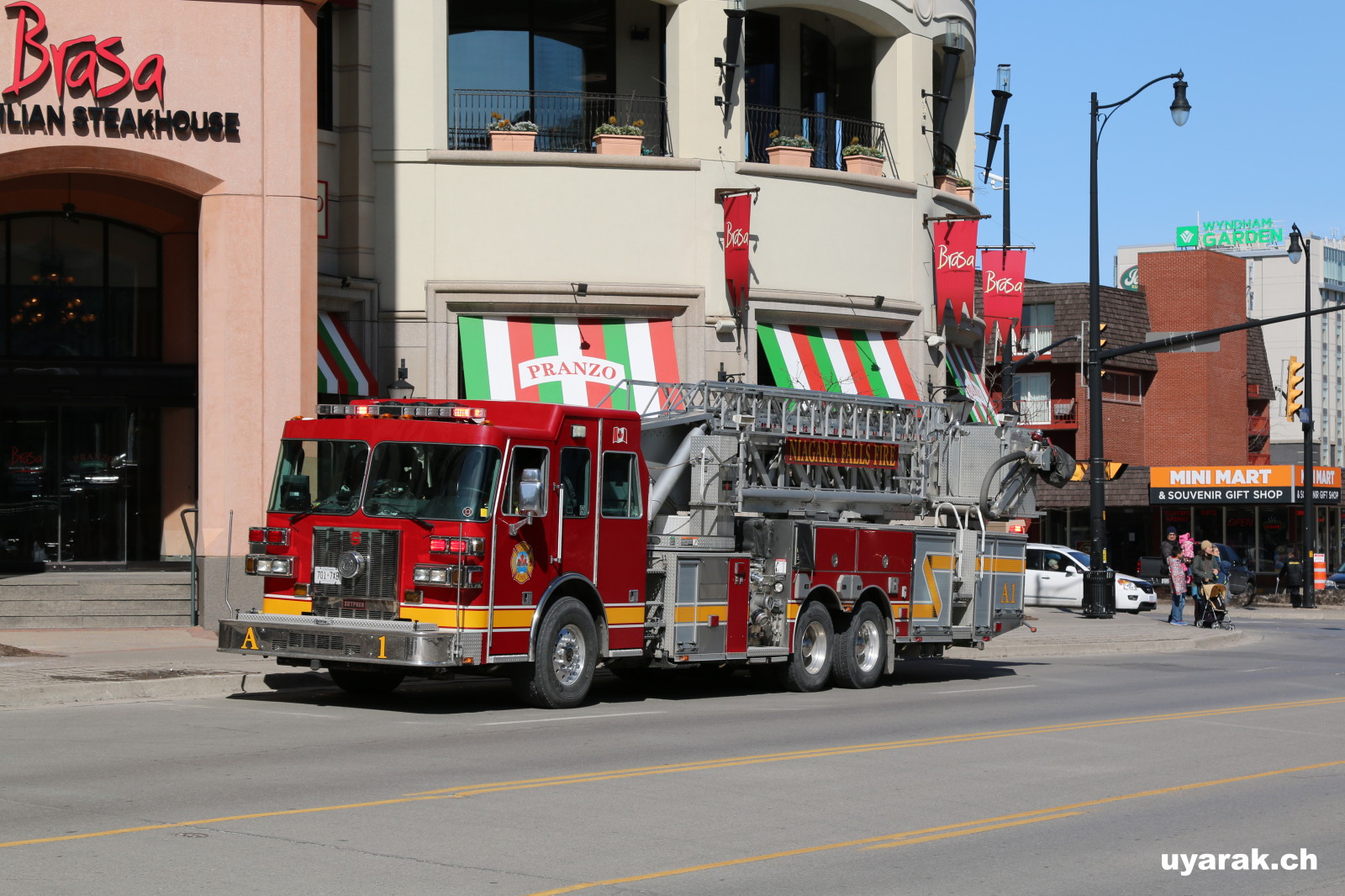 In Niagra Falls angekommen marschieren wir 2.5 km bis zum Radisson Hotel welches uns für zwei Nächte Unterkunft bietet. Planmässig wollen wir noch am Abend die Fälle bestaunen, doch als wir um ca. 18:00 Uhr vor die Türen treten bläst uns ein so eisig kalter Wind entgegen, dass wir nur noch ganz kurz das nächste Restaurant ansteuern.
