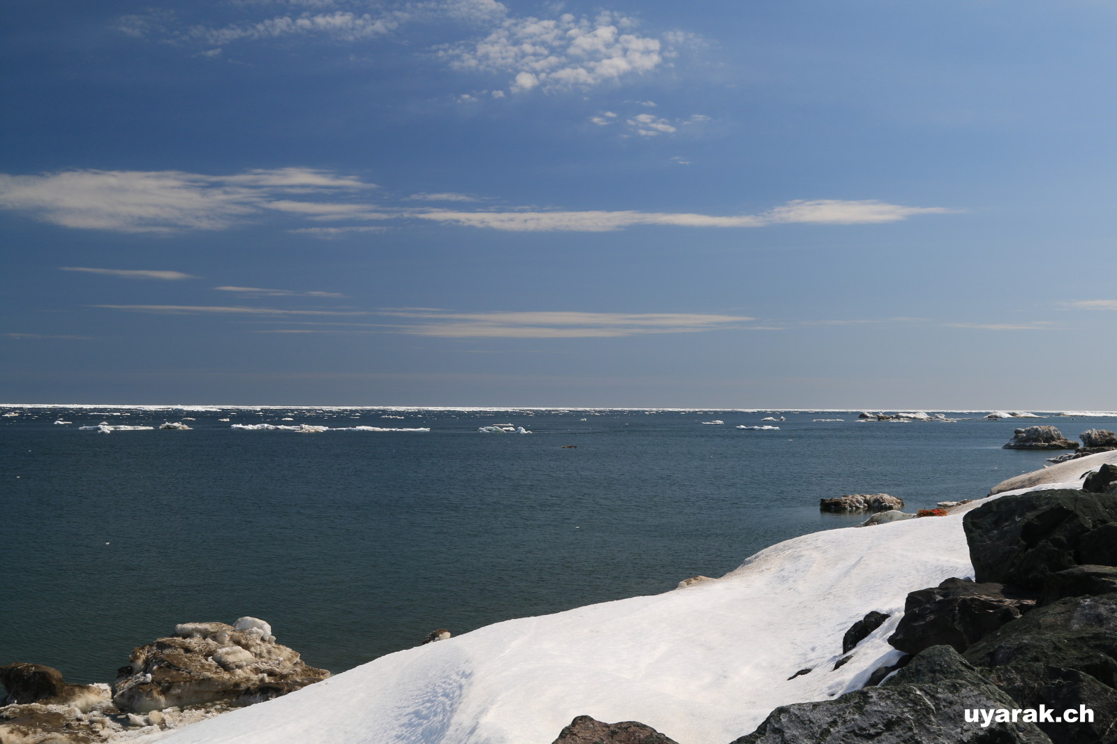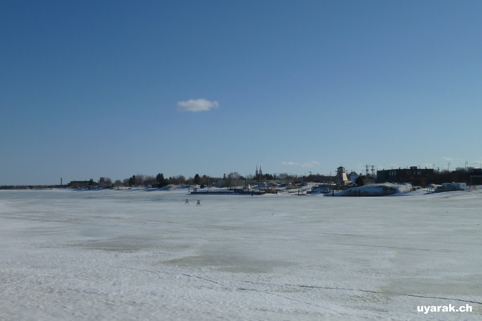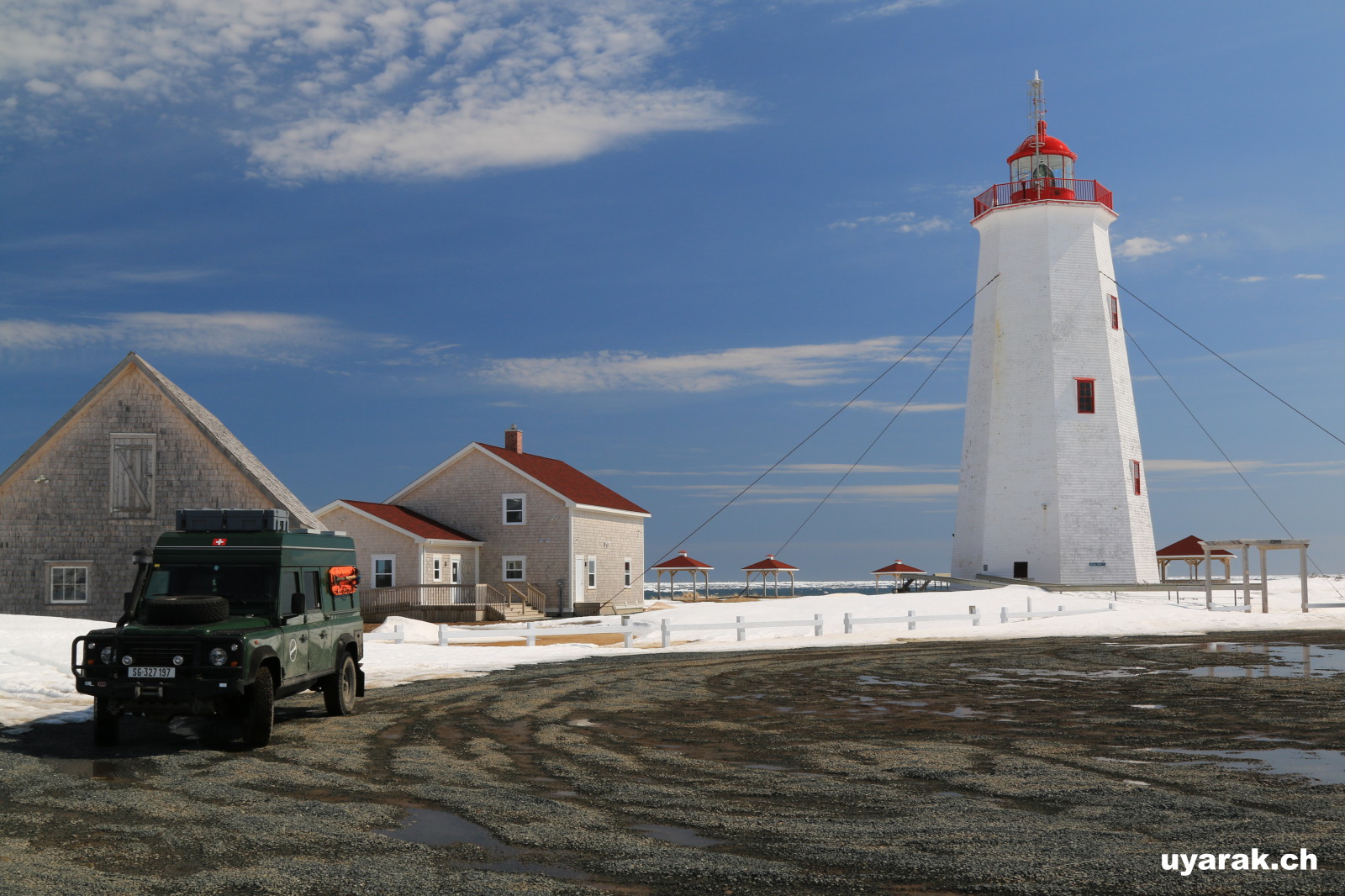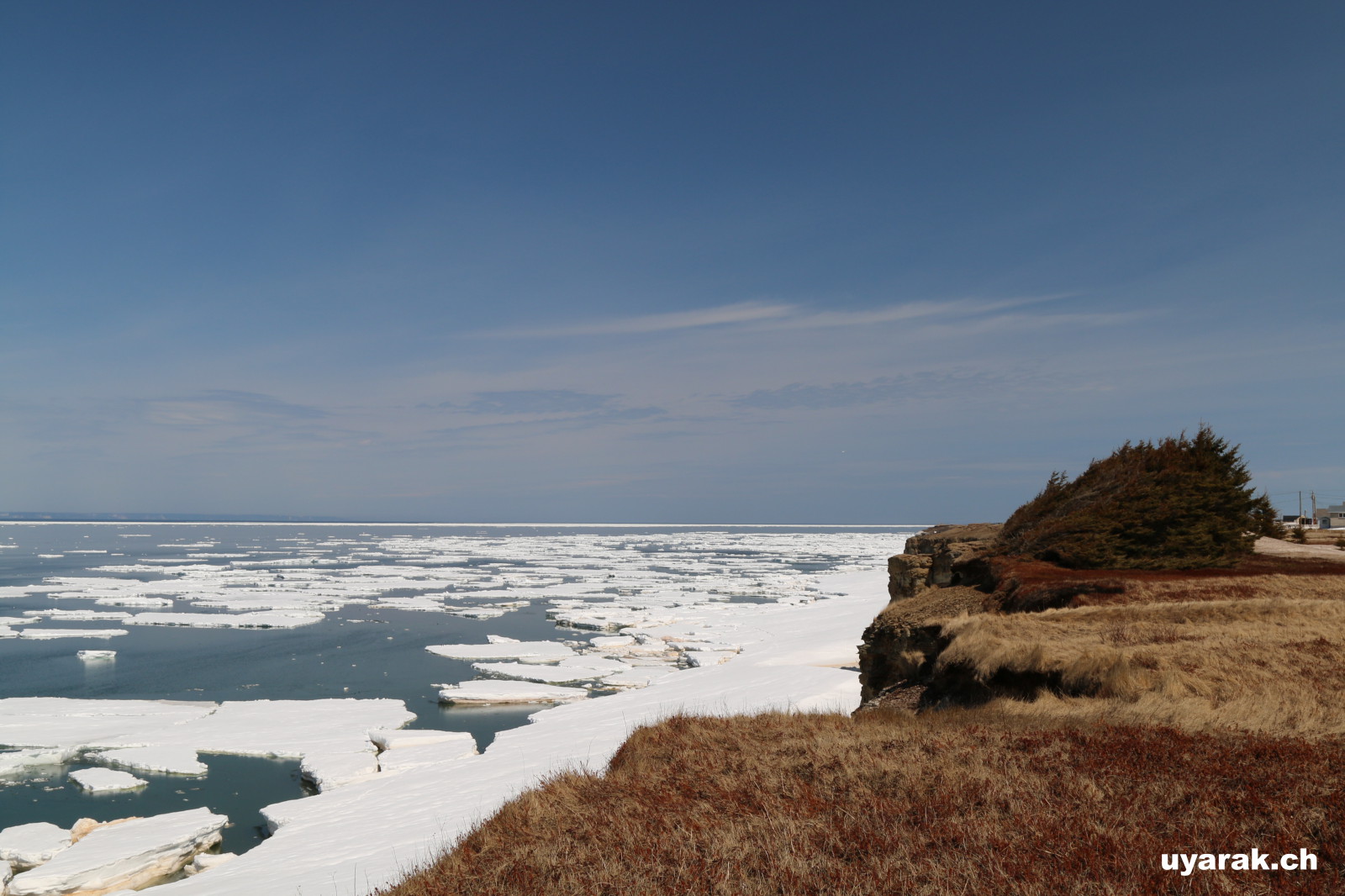 Weiter geht die Fahrt nach Osten bis an die Küste. Auf kleinen Landstrassen folgend wir der Akadierküste nach Norden. Viele der Buchten sind noch zugefroren und an Land liegt auch hier noch sehr viel Schnee, doch die Sonne scheint und mit etwas Fantasie fühlt es sich schon beinahe wie Frühling an. Die Wanderung durch La dune de Bouctouche und der Besuch im rekonstruierten Akadierdorf Le Pays de la Sagouine fallen ebenfalls dem vielen Schnee zum Opfer und wir fahren an diesem Tag durch bis Richibougdu wo wir auf dem Parkplatz des Visitor-Centers einen schneefreien Platz für Uyarak finden.