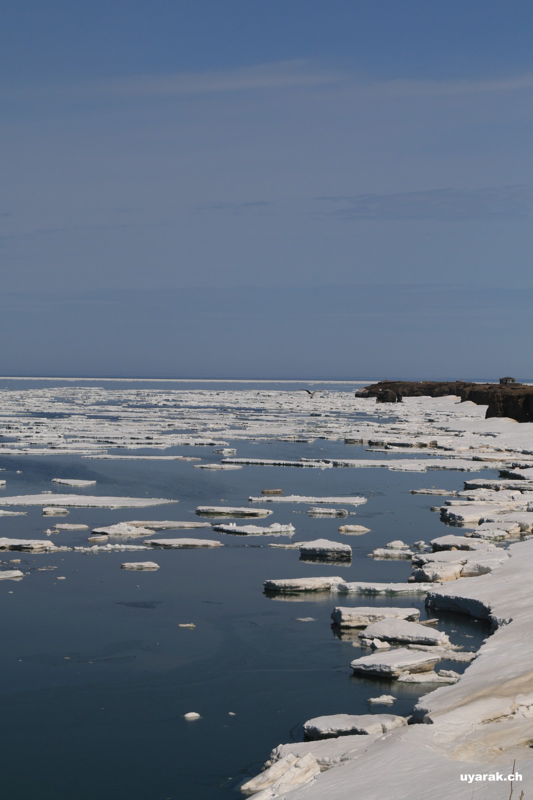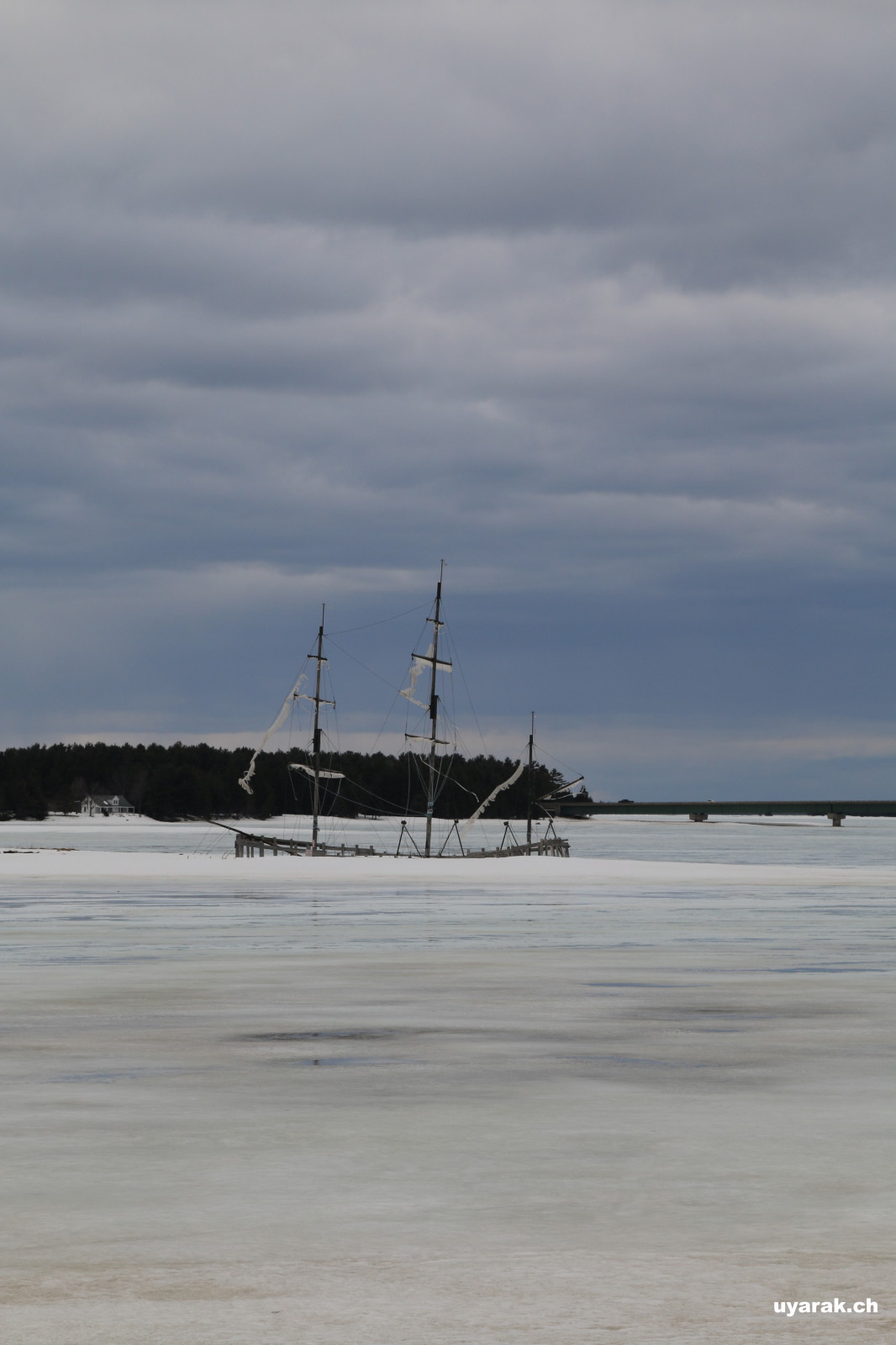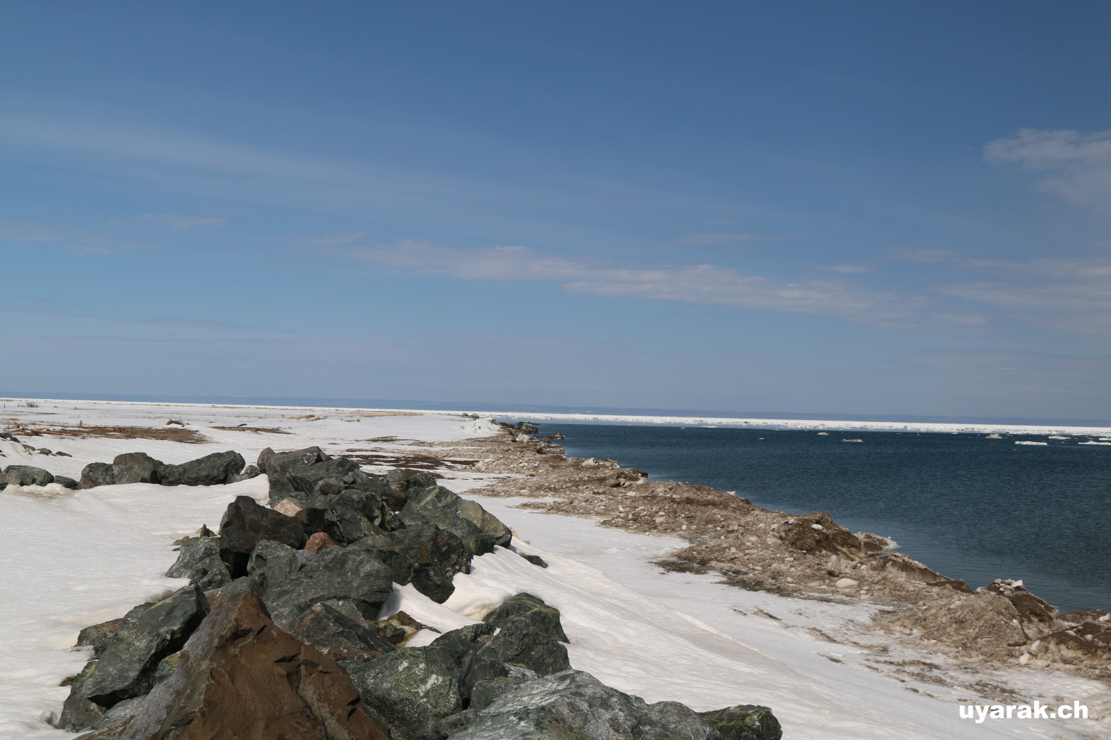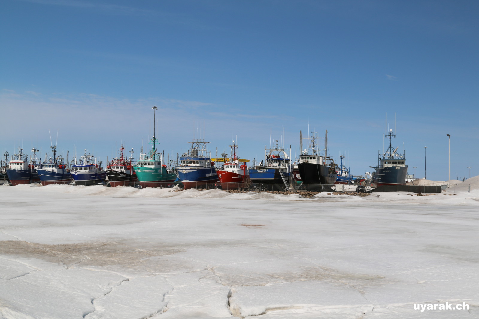 Weiter geht die Fahrt nach Osten bis an die Küste. Auf kleinen Landstrassen folgend wir der Akadierküste nach Norden. Viele der Buchten sind noch zugefroren und an Land liegt auch hier noch sehr viel Schnee, doch die Sonne scheint und mit etwas Fantasie fühlt es sich schon beinahe wie Frühling an. Die Wanderung durch La dune de Bouctouche und der Besuch im rekonstruierten Akadierdorf Le Pays de la Sagouine fallen ebenfalls dem vielen Schnee zum Opfer und wir fahren an diesem Tag durch bis Richibougdu wo wir auf dem Parkplatz des Visitor-Centers einen schneefreien Platz für Uyarak finden.