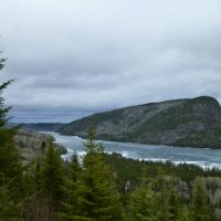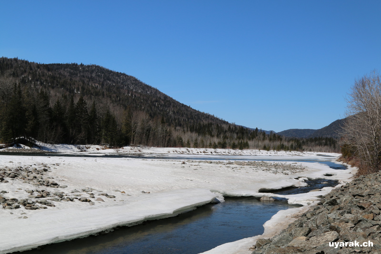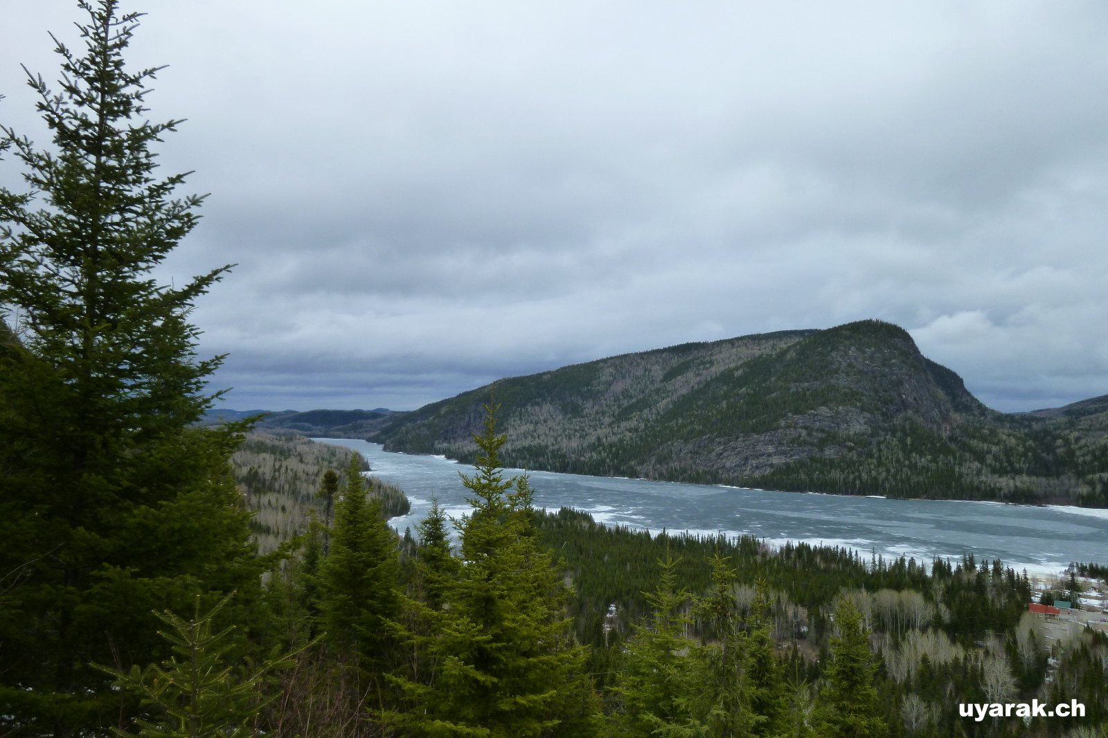 Auch in Trois-Pistoles wird nichts mit der Überfahrt, auch hier gilt "erst ab Mitte Mai". Das hatten wir aber bereits im Internet nachgeschlagen, weshalb wir am Sonntagmorgen direkt nach Rivière-du-Loup fahren. Um 12 Uhr legt die Fähre ab und wir geniessen die Sonne an Deck während der stündigen Überfahrt. In Saint-Siméon haben wir uns bei Huguette ein Zimmer reserviert. Sie betreibt eine Art Mini-Pflegeheim mit neun Bewohnern und im Gebäude nebenan ein kleines B&B mit 4 Zimmern. Obwohl wir die einzigen Gäste sind bekommen wir ein ausgiebiges Frühstück. Gut gestärkt fahren wir am Montagmorgen in den Parc National du Saguenay. Wie gewohnt ist dieser für Fahrzeuge noch gesperrt und wir gehen zu Fuss 7 km in den Nationalpark hinein bis zur Baie Éternité. Von hier aus wollen wir noch etwas weiter bis zur Statue de la Vierge doch der Schnee und die bereits fortgeschrittene Zeit zwingen uns umzukehren.