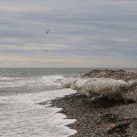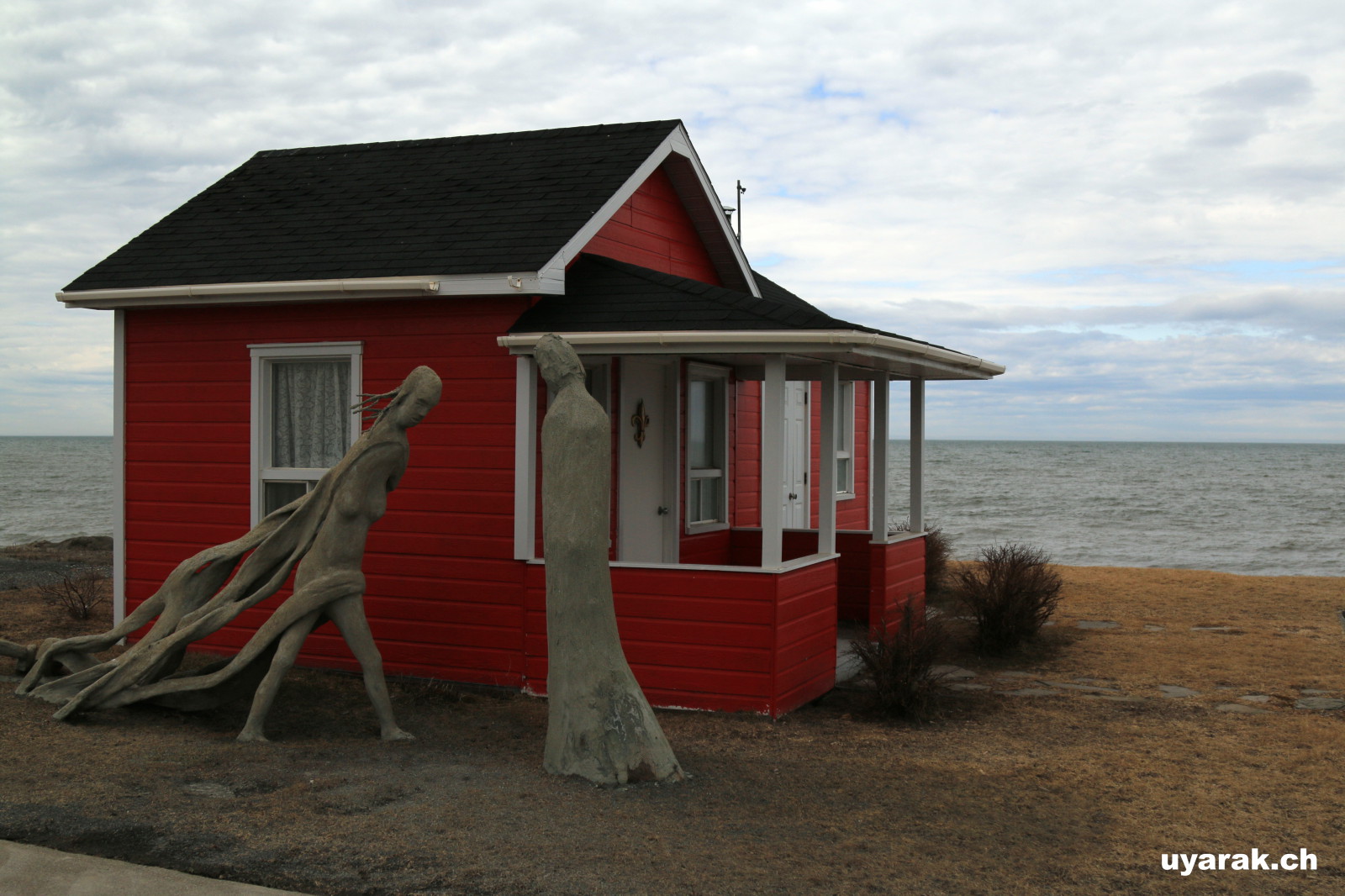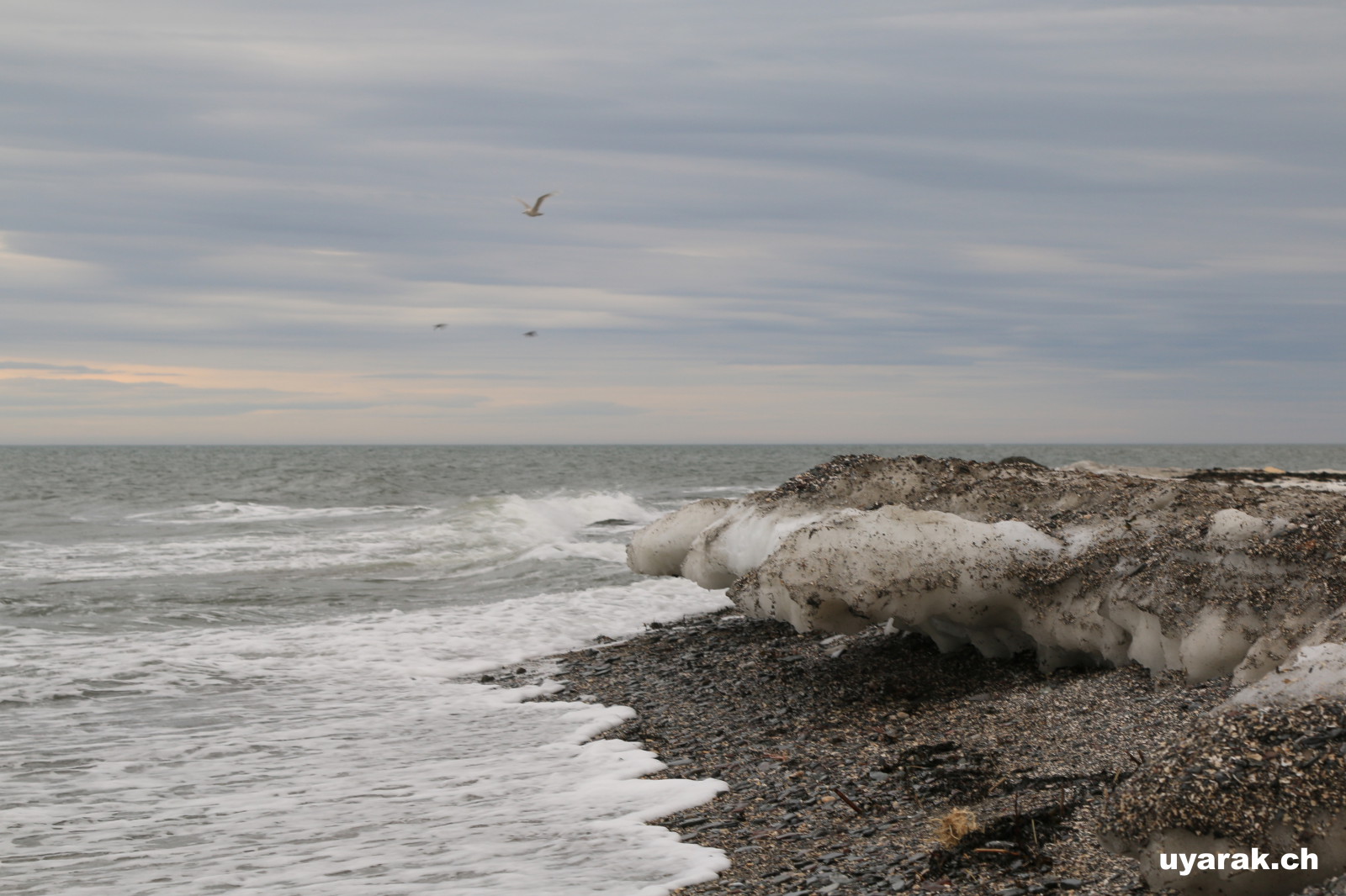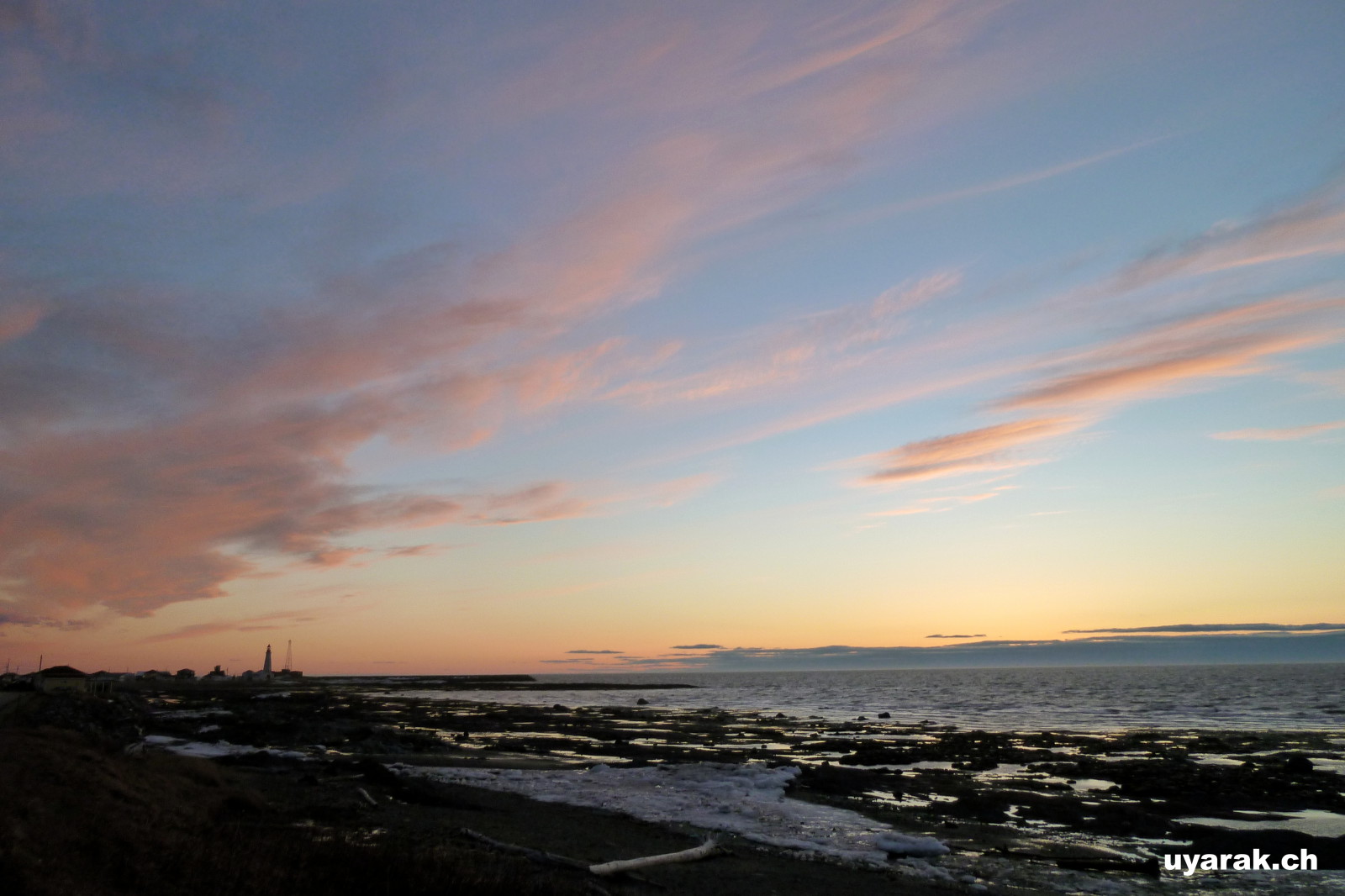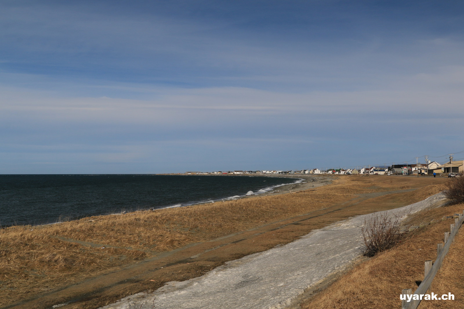 Auf etwas weniger Schnee hoffend fahren wir am Nachmittag weiter an die Küste nach Sainte-Anne-des-Monts. Wir können es kaum glauben, aber hier ist es wirklich grün - OK, eher gelb und braun, aber nicht weiss! Wir folgen dem Sankt-Lorenz-Strom Richtung Westen und geniessen den ersten Frühlingstag. In Chap-Chat finden wir ein Plätzchen für die Nacht und können sogar am Sandstrand entlang spazieren gehen.