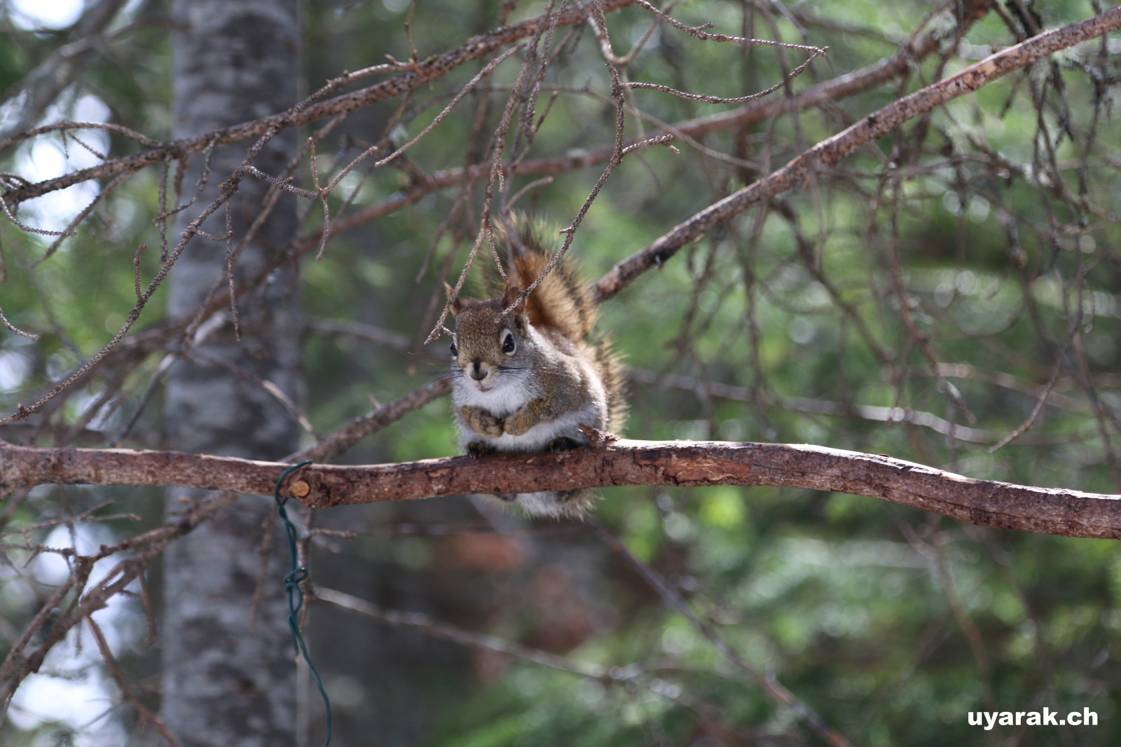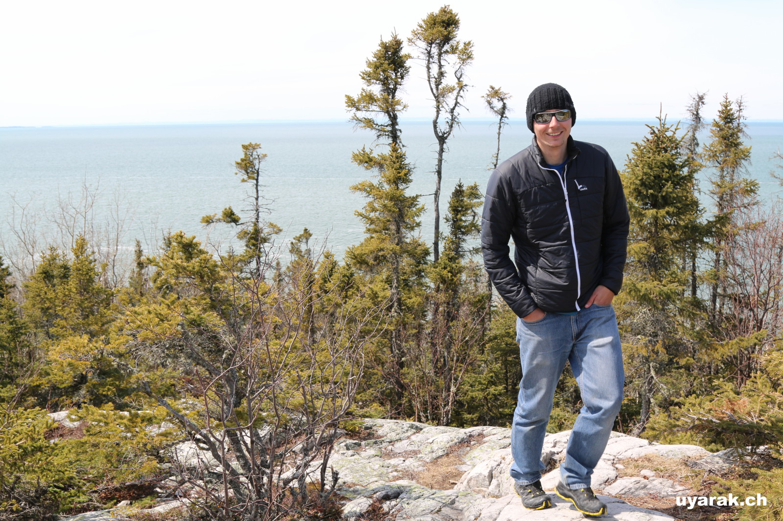 Am Samstagmorgen lotst mich Fränzi zum Parc National du Bic. Auf der wunderschönen Rundwanderung können wir wiederum die schöne Küste überblicken und ein Grauhörnchen aus nächster Nähe beobachten. Zurück auf der Strasse fahren wir einige Kilometer später an einem Schild "Parc National du Bic" vorbei, woraufhin Fränzi etwas erstaunt feststellt, dass wir vorhin anscheinend ganz woanders waren. Ein genauer Blick auf die Karte offenbart die Navigationspanne, wir waren bei Rocher-Blanc und gar nicht im National Park. Auch gut, geht es halt jetzt in den Park. Überrascht stellen wir fest, dass das Besucherzentrum geöffnet hat. Wir unterhalten uns mit der Park-Rangerin und fragen nach dem Campingplatz. Geschlossen meint sie, aber sie frage mal bei ihrem Kollegen nach. Ein paar Minuten später erklärt sie uns, dass sie ihn für uns öffnet und zeigt uns wo wir eine Wanderung machen könnten. Unser Ziel heisst - passend für Fränzi - "Mont Chocolat", es handelt sich dabei aber nicht um ein riesiges Stück Toblerone, es ist nicht mal ein Berg, denn wir stehen nach rund 4 km an einer Bucht. Ganz alleine steht Uyarak am Abend auf dem Zeltplatz und wir kochen Spaghetti.