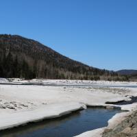 Bei schönstem Wetter fahren wir am Mittwochmorgen bei Campellton über die Brücke auf die Gaspésie-Halbinsel, womit wir bereits die zweite kanadische Provinz hinter uns lassen. Bienvenue au Québec! Wir folgen dem Highway 132 der Küste entlang nach Osten. Die vielen Hotels und Ferienhäuser lassen darauf schliessen, dass hier im Sommer wohl einiges mehr los ist. Doch wir geniessen die leeren Strassen, das perfekte Wetter und die Ruhe. Bei Maria biegen wir auf den Highway 299 nach Norden ab mit dem Ziel Parc de la Gaspésie. Irgendwo inmitten der Berge entdeckt Fränzi einen Forstweg, der grösstenteils schneefrei ist. In der Hoffnung auf einen schönen Platz zum Übernachten biegen wir kurzerhand ab und folgen dem Weg. Wir werden nicht enttäuscht. Eingewickelt in eine Decke verbringen wir den Nachmittag lesend in der Sonne.