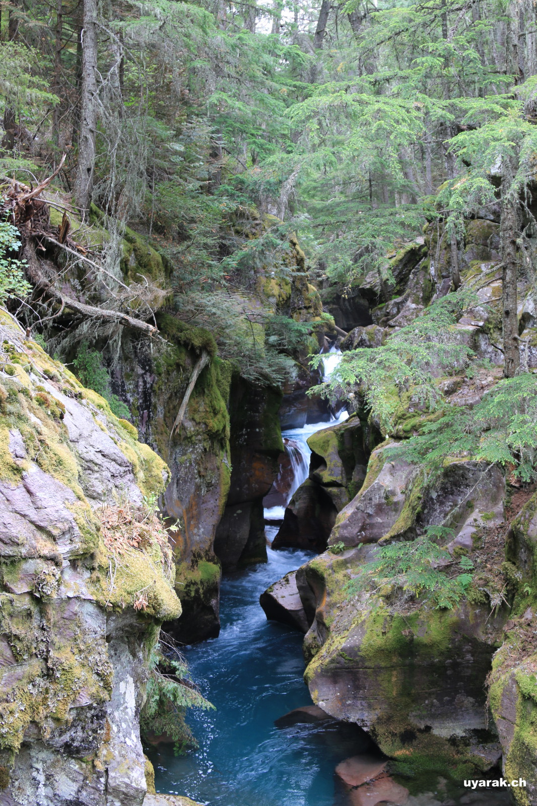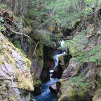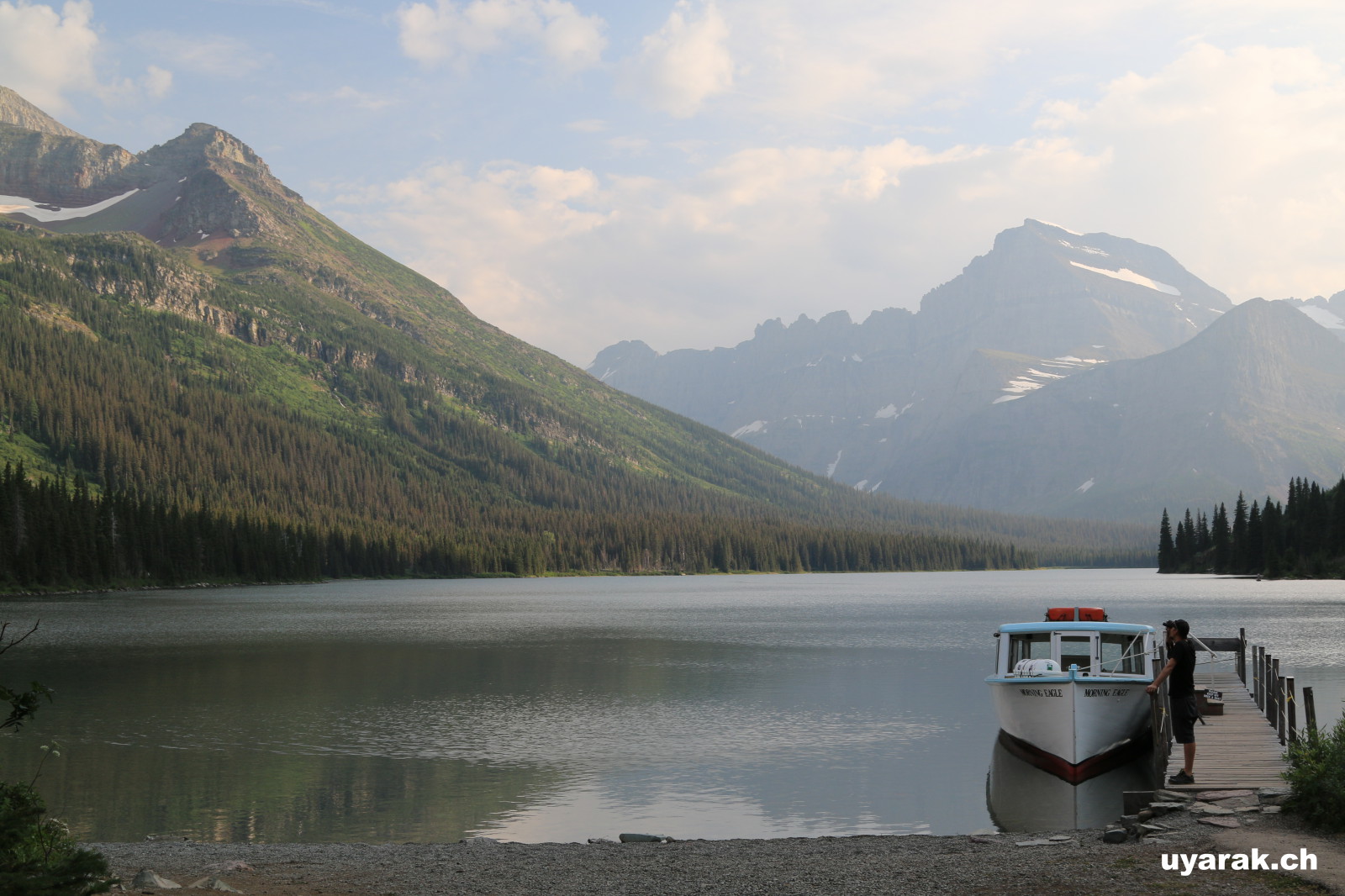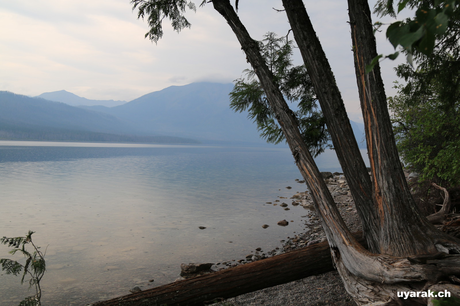 Der einzige Campingplatz bei Many Glacier ist leider schon voll und so campen wir wild am Swiftcurrent Creek etwas ausserhalb vom Nationalpark. Bereits kurz nach sechs Uhr brechen wir am nächsten Morgen wieder auf, denn wir wollen auf der Going-to-the-Sun Road quer durch den Nationalpark fahren und nicht in einer Blechlawine stehen. Der Plan geht auf - zumindest teilweise. Wie gehofft sind die meisten Touristen noch im Bett und so hat es kaum Verkehr. Die Bauarbeiter sind leider aber schon auf und so stehen wir bald vor der ersten Baustelle und warten auf den Pilot-Car. Langsam und Baustelle für Baustelle arbeiten wir uns den Berg hoch. Bis wir den Logan Pass (2025 ) erreichen, ziehen leider bereits die ersten Regenwolken auf und so lassen wir das Wandern bleiben. Auf der Westseite fahren wir wieder ins Tal hinunter und machen in Avalache Creek trotz mässigem Wetter noch einen kleinen Spaziergang durch den Wald bevor wir bei Apgar den Park wieder verlassen.