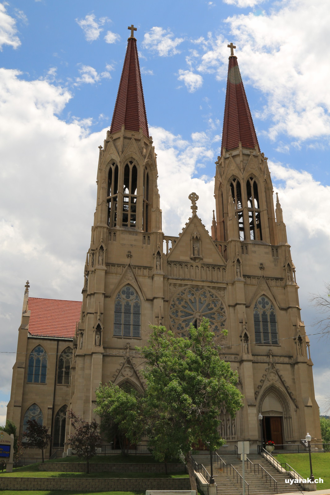 Wir spazieren auf den herrlich schattigen, von Bäumen gesäumten Trottoirs durch das Stadtzentrum. Neben ungewöhnlich vielen Oldtimern fallen uns einige Hirsche auf, die es sich in den Vorgärten gemütlich gemacht haben. Unser erstes Ziel ist die St. Helena Cathedral, eine im europäischen Stil gebaute Kirche aus dem Jahr 1908. Mit ihren in München hergestellten Bleiglasfenstern und den aufwändigen Verzierungen ist sie zwar schön anzusehen, passt aber irgendwie nicht ganz nach Montana.