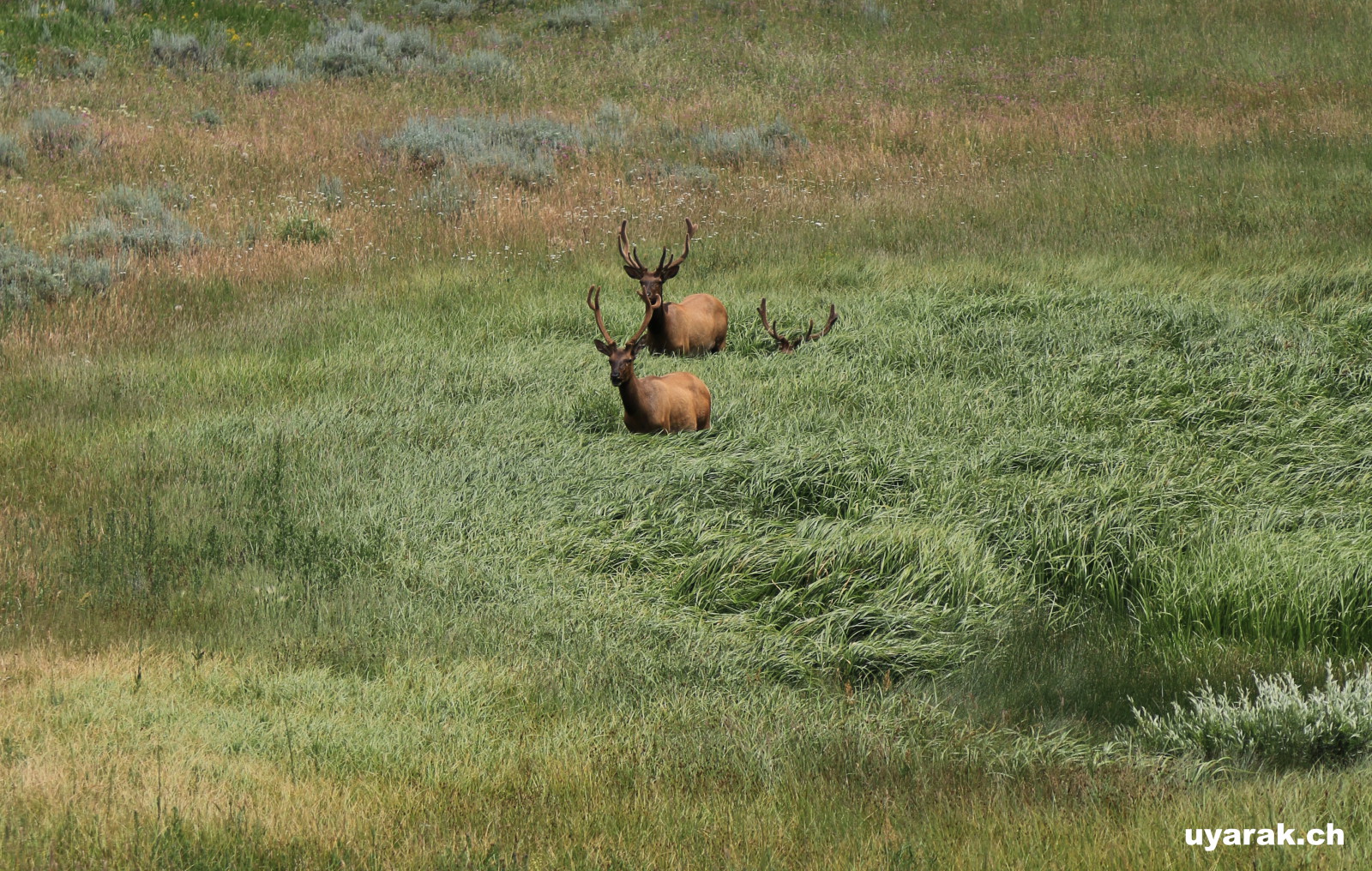 Über Livingstone fahren wir Richtung Yellowstone National Park. Von meinem letzten Besuch 2011 weiss ich, dass es schwierig ist einen freien Zeltplatz im Nationalpark zu finden. Bereits vor dem Mittag ist in der Hauptsaison meist alles voll und so versuchen wir unser Glück auf dem Eagle Creek Campground bei Gardiner, wenige Kilometer vor dem nördlichen Parkeingang. Wir haben Glück, denn obwohl die 15 Plätze eigentlich schon voll sind dürfen wir bleiben.