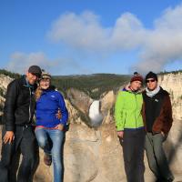 Nach einer kleinen Ausfahrt bis zu den Tower Falls kehren wir zum Campingplatz zurück. Beim Lesen in der Hängematte hören wir dann plötzlich ein für die USA ungewohntes Geräusch - ein vier Zylinder Dieselmotor. Es ist Roadrunner, der Toyota von Ivana und Mike. Die Wiedersehensfreude ist natürlich riesig und wir verbringen zusammen einen gemütlichen Abend am Lagerfeuer und erzählen uns von den bisherigen Reiseerlebnissen.