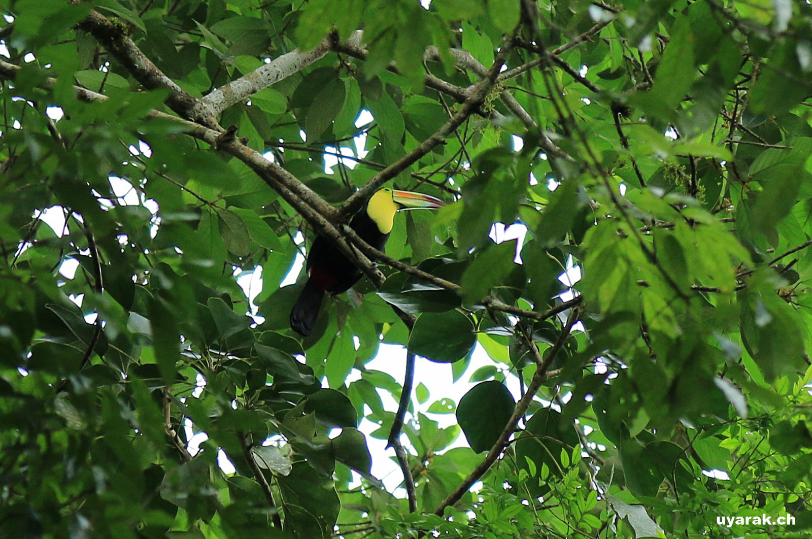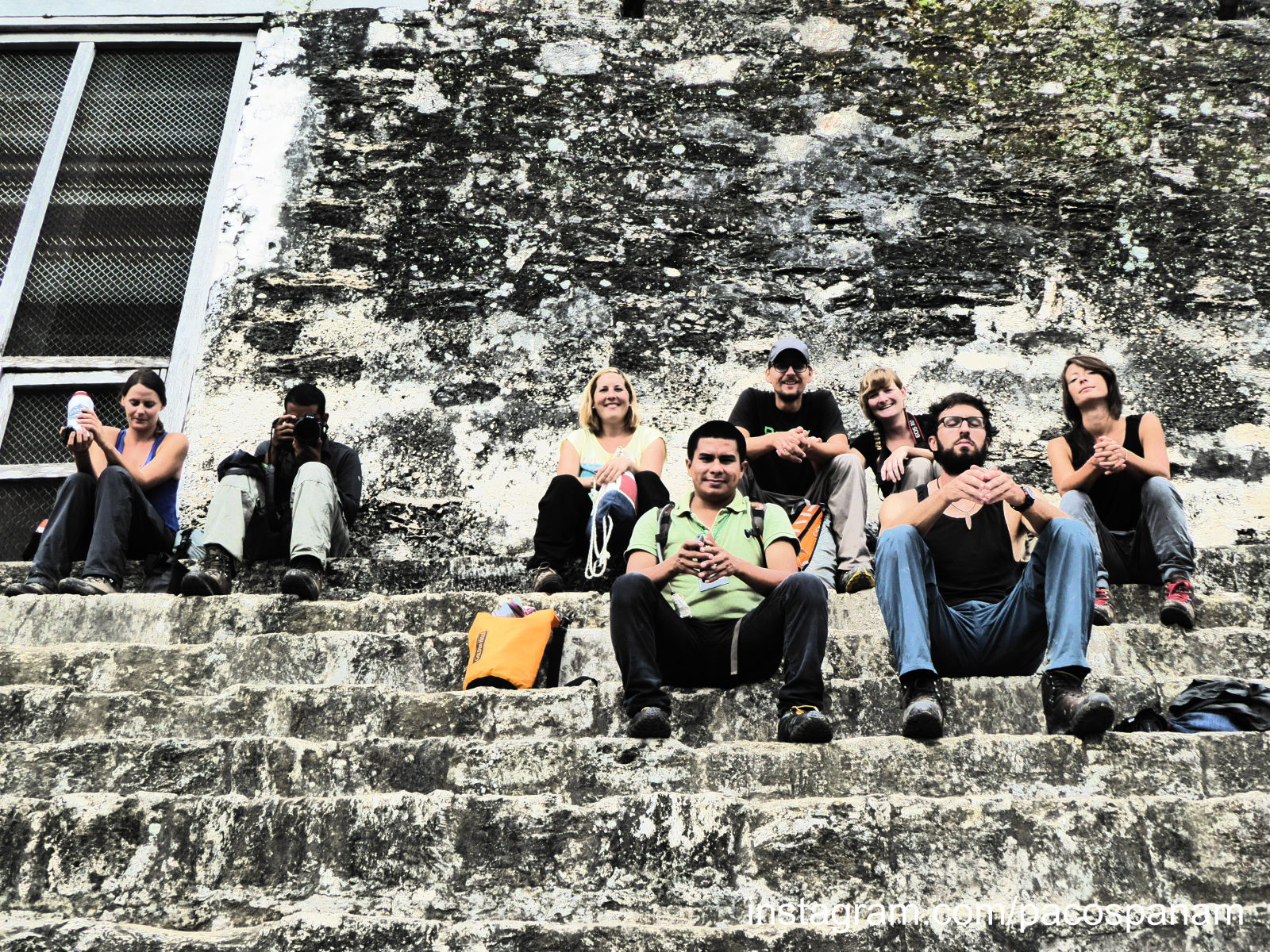 Von Yaxhá ist es nur eine kurze Fahrt zur bedeutendsten Maya-Stätte in Guatemala: Tikal. Vom einst 65 km2 grossen Gebiet ist heute nur der ca. 16 km2 umfassende zentrale Teil zugänglich. Im Aussenbereich schlummern noch geschätzte 10'000 Gebäude unter dichtem Dschungel. Damit wir nicht einfach nur zwischen Ruinen im Dickicht herumstolpern, engagieren wir einen professionellen Guide für den nächsten Morgen. Um halb sieben in der früh starten wir bereits, noch im Halbdunklen laufen wir los. Während der Dschungel langsam erwacht erklimmen wir bereits die erste Pyramide und beobachten Brüllaffen, Klammeraffen und Tukane. Wir lernen viel über die Bräuche und Rituale der Mayas und sind fasziniert von der Präzision mit der die Baumeister vor über 1200 Jahren die riesigen Pyramiden erstellt haben. Auch zu den Dschungelbewohnern weiss unser Führer einiges zu erzählen. Unter anderem, dass in den fünfziger und sechziger Jahre die Affen noch gefüttert werden durften. Die Folge waren nicht nur freche und lästige Affen, sondern auch eine starke Überpopulation von Vogelspinnen. Zu Fränzis Erleichterung ist die Anzahl dieser grossen Achtbeiner wieder auf ein normales Mass zurück gegangen. Nach 6 Stunden machen sich die unzähligen Kilometer dann langsam bemerkbar und wir kehren zu unseren Fahrzeugen zurück.