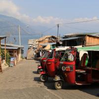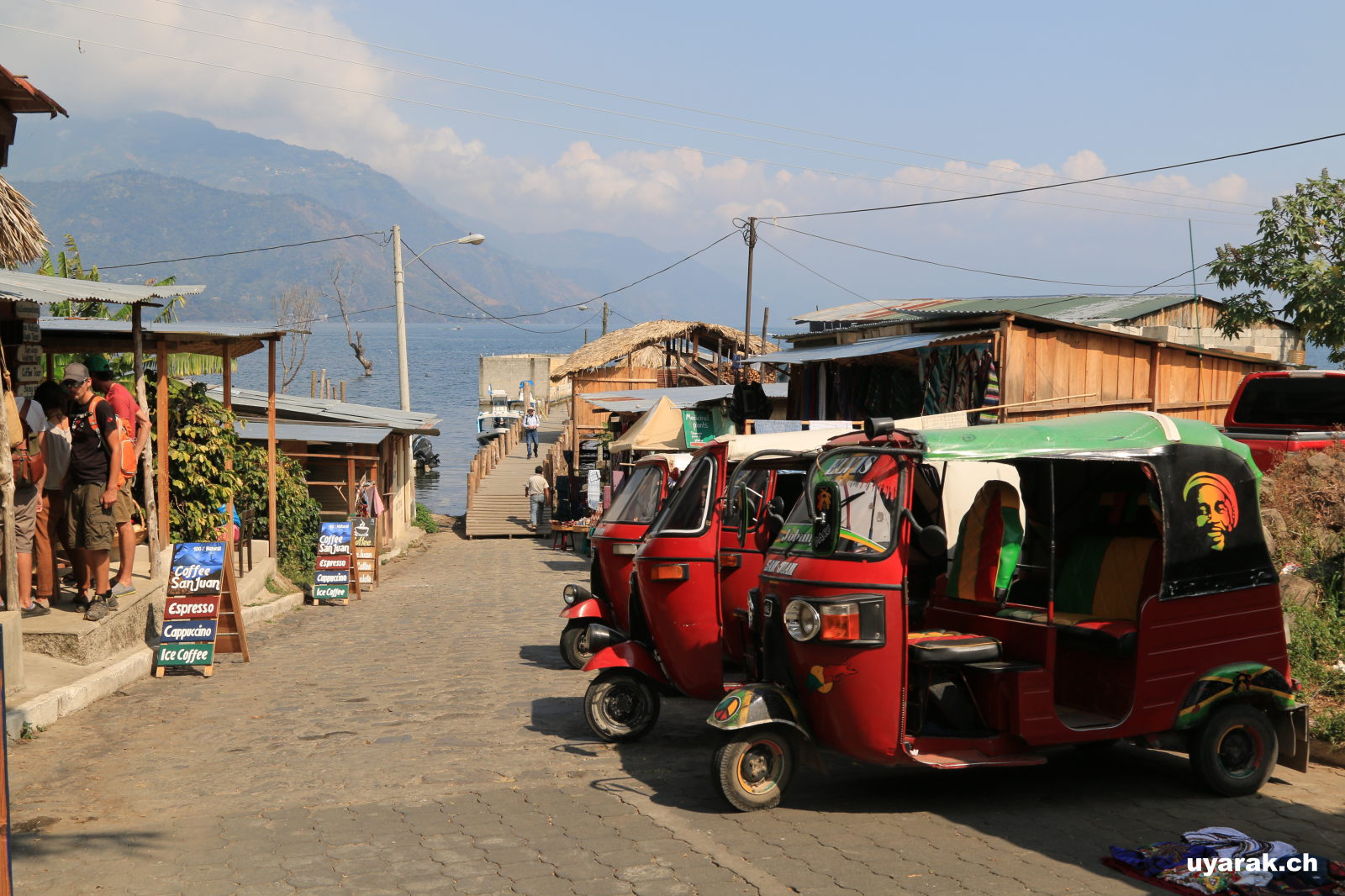 Mit dem Boot-Taxi fahren wir am nächsten Tag nach San Juan, wo wir gemütlich durch die Stadt schlendern und das eine oder andere einkaufen. Zurück geht es auf der Strasse. Da sechs Personen zu viel für ein einzelnes Tuk-Tuk sind, teilen wir uns auf und die beiden Fahrer liefern sich ein kleines Rennen. Durch die kleinen Motoren und die steilen Strassen fällt das Tempo jedoch sehr gemächlich aus und wir fragen uns zum Teil ob wir wohl aussteigen und stossen sollen.