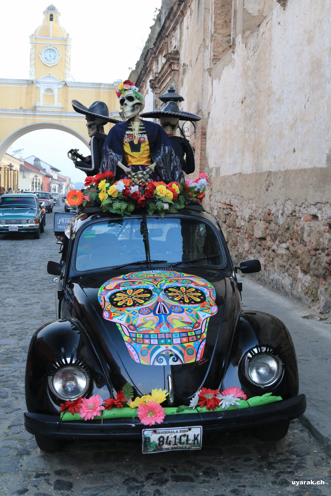 In Antigua erwartet uns Luxus, denn wir haben ein ganzes Ferienhaus gemietet. Die seit 1979 zum Weltkulturerbe gehörende Stadt begrüsst uns jedoch erst mal mit einem kleinen Verkehrskollaps. Langsam quälen wir uns durch die engen Gassen und fahren erst mal bei der Autowerkstatt La Recolección vorbei. Während der Mitsubishi von Paula und Constantin neue Reifen und neue Bremsbeläge benötigt, sollte sich bei unserem Kleinen mal jemand die quietschende vordere Bremse ansehen. Der Nissan von Fabienne und Christian raucht seit ein paar Tagen verdächtig weiss und läuft viel zu kalt. Wir haben Glück und bekommen alle einen Termin für den nächsten Morgen.