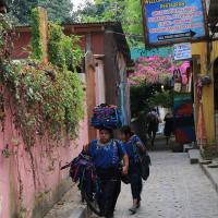 Unsere Fahrt weiter nach Süden führt uns während drei Tagen durch die Gebirgsketten Sierra de los Cuchumatanes und Sierre Madre. Teerstrassen wechseln sich ab mit einsamen Schotterpisten hoch oben in den Bergen. Wir fahre über hohe Pässe und zum Schluss über eine unglaublich steile Strasse hinab zum Lago de Atitlán. Hier quartieren wir uns für zwei Nächte bei Pierre, einem ausgewanderten Franzosen, ein.