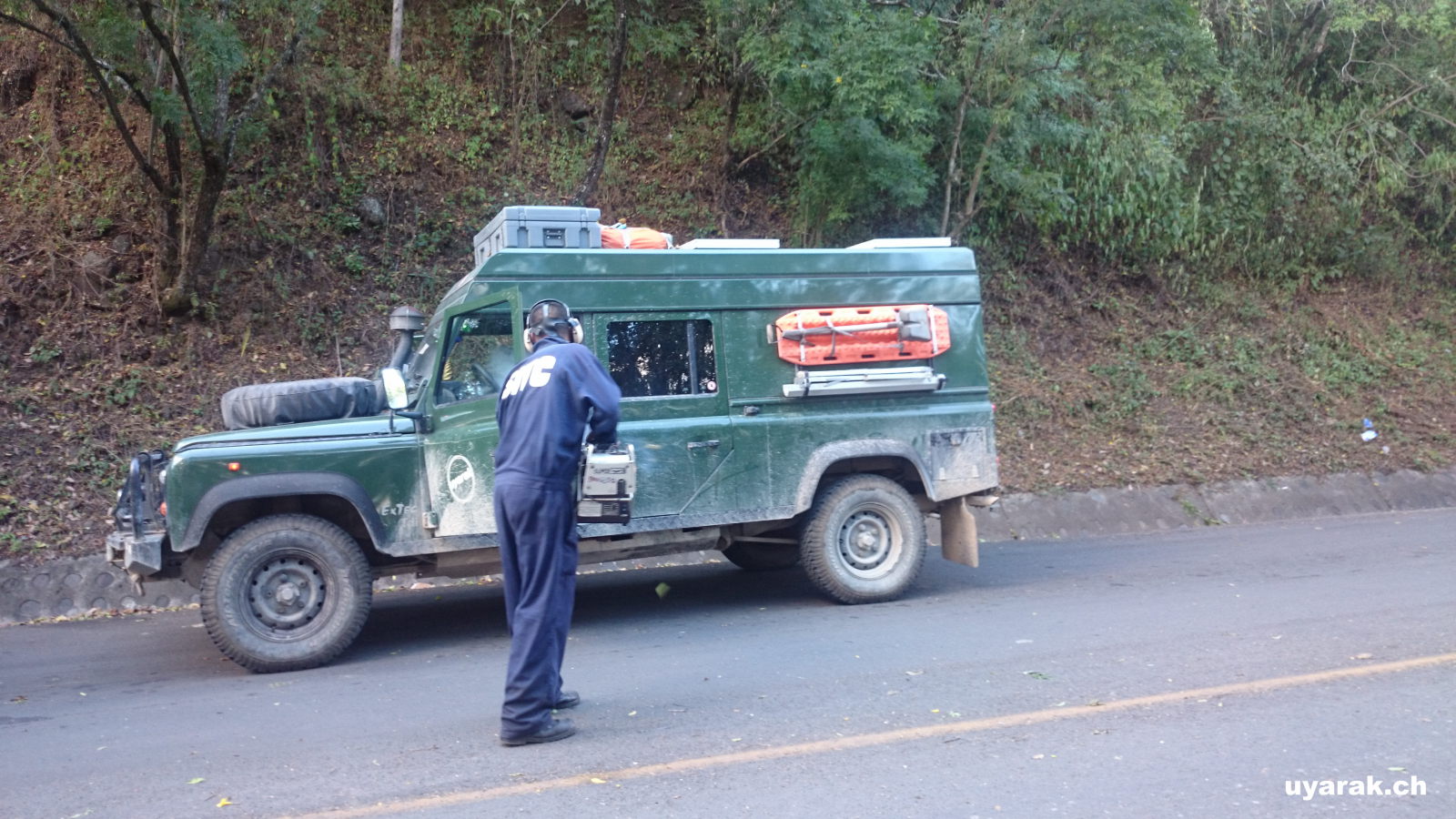 Nicht ganz unglücklich das Land wieder verlassen zu können, erreichen wir nach einer kurzen Fahrt die nächste Grenze. Kaum haben wir die Fahrzeuge abgestellt, bietet uns der erste Grenzbeamte auch schon an, dass wir uns den ganzen Papierkram für die Ausreise sparen können, wenn wir ihm dafür ein paar Dollar geben. Wir verzichten dankend auf das Angebot und nehmen den offiziellen Weg. Mit allen notwendigen Kopien ausgerüstet fahren wir über die Brücke und werden in Honduras begrüsst. Auch hier gibt es natürlich erst wieder einen Haufen Papierkram zu erledigen. Fabienne und Christian versuchen ihr Glück mit einem der vielen Grenzhelfern, kommen aber trotzdem nicht schneller voran. Während die Migration noch problemlos klappt, macht der Beamte bei der Fahrzeugeinfuhr ein Durcheinander und stempelt die Daten von Uyarak in den Pass von Laurent. Zwei weitere Stempel beheben das Problem. Irgendwann haben wir es dann geschafft und gehen zurück zu den Fahrzeugen, wo bereits das nächste Problem auf uns wartet. Der Helfer rückt nur widerwillig die Papiere raus und verlangt plötzlich mehr Geld. Ausserdem bietet er uns Hilfe an bei der Fumigation, Inspection und beim Checkpoint. Ohne seine Hilfe dauere es Stunden da durchzukommen, beteuert er. Wir glauben ihm kein Wort und versuchen unser Glück alleine. Wie erwartet gibt es die drei Posten gar nicht und wir verlassen das Grenzgebiet ohne Probleme.
