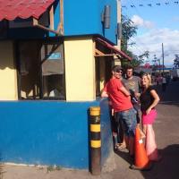 Bevor wir am nächsten Morgen zu unserem Grenzmarathon aufbrechen, machen wir uns auf die Suche nach einer Bäckerei. Kurzerhand erkundigt sich Fabienne bei einem Passanten. Dieser starrt sie jedoch nur ungläubig an und bringt erst mal kein Wort über die Lippen. Fabienne zweifelt bereits an ihrer spanischen Aussprache, doch dann zeigt der Mann in eine Richtung, murmelt etwas und geht schnellen Schrittes weg. Erst viel später erfahren wir, dass es hier nur den Frauen bzw. Freundinnen von hohen Gangmitgliedern erlaubt ist blonde Haare zu tragen. Hoppla.