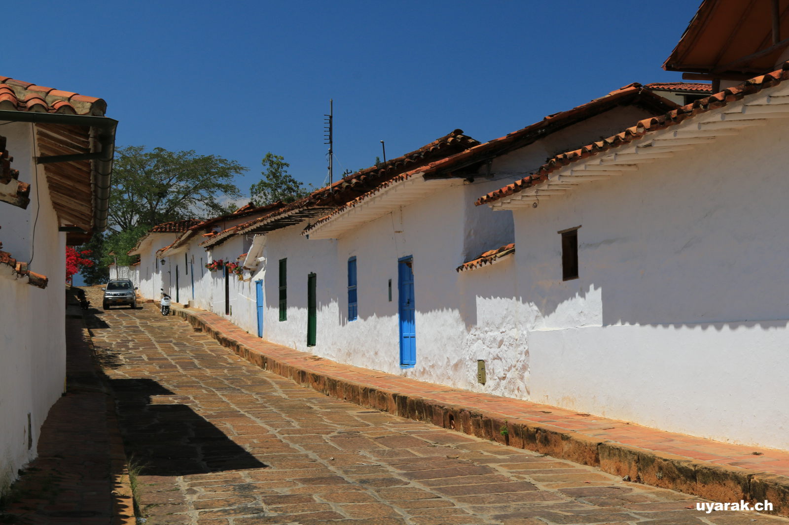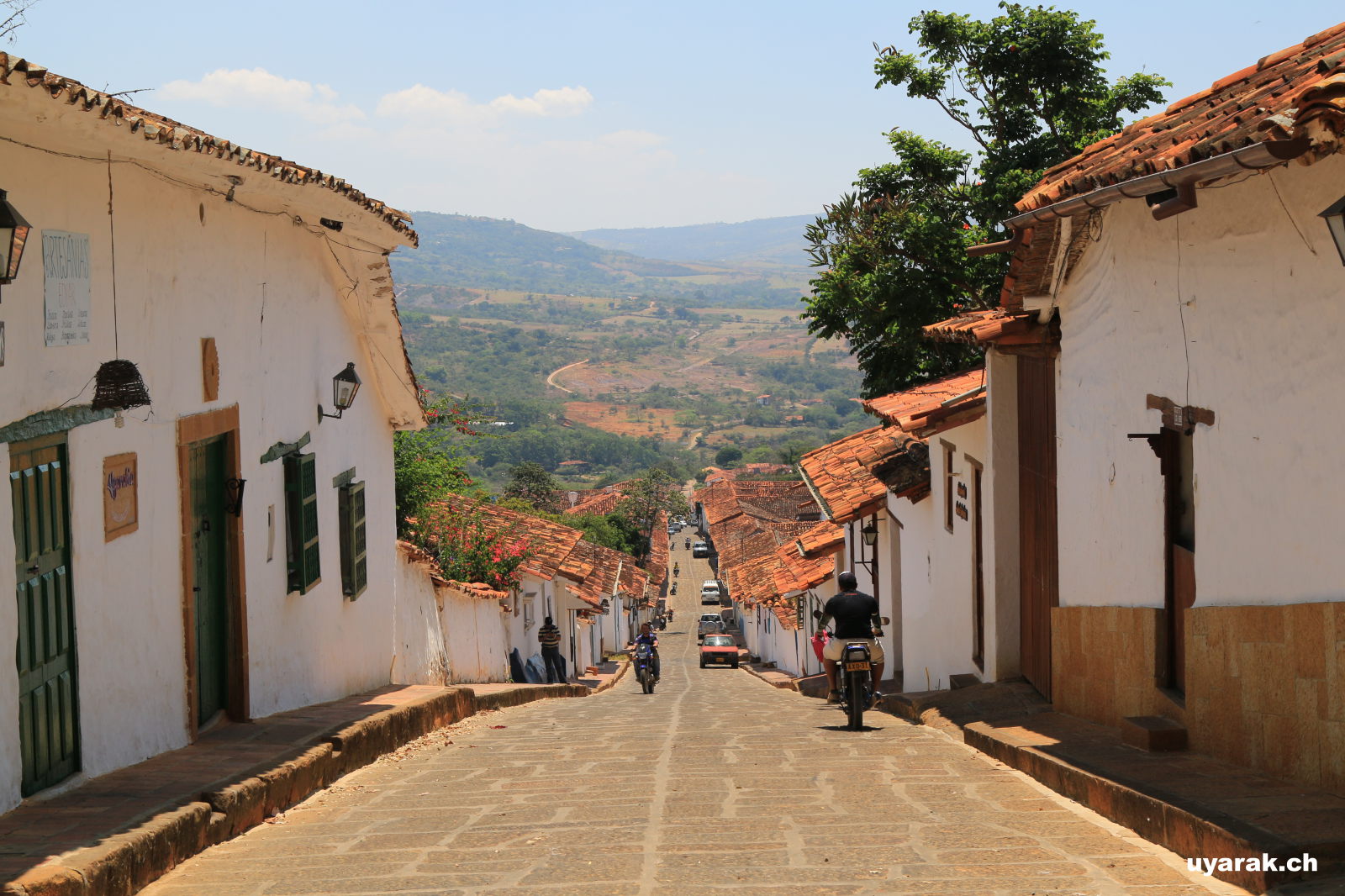 Nur wenige Kilometer südlich liegt das bekannte Städtchen Barichara. Uyarak haben wir für einmal auf dem Campingplatz La Pacha abgestellt und versuchen unser Glück mit "dem Daumen nach oben". Der bunt bemalte Camper, welcher sich den Berg hochkämpft hält sofort an und nimmt uns mit. So lernen wir vier junge Argentinier kennen, welche ihren Freund auf der Weltreise besuchen, um ein Stück mit ihm zu reisen. Von Barichara aus wandern wir hinab in das kleine Bergdorf Guane und lassen uns anschliessend von einem Tuk-Tuk wieder hochfahren (was für ein Krampf für den kleinen Motor).