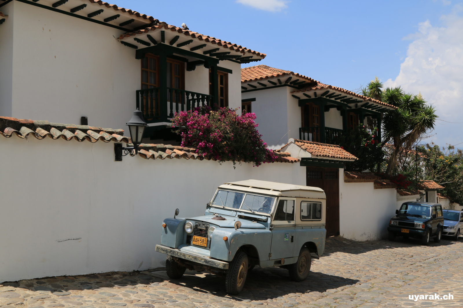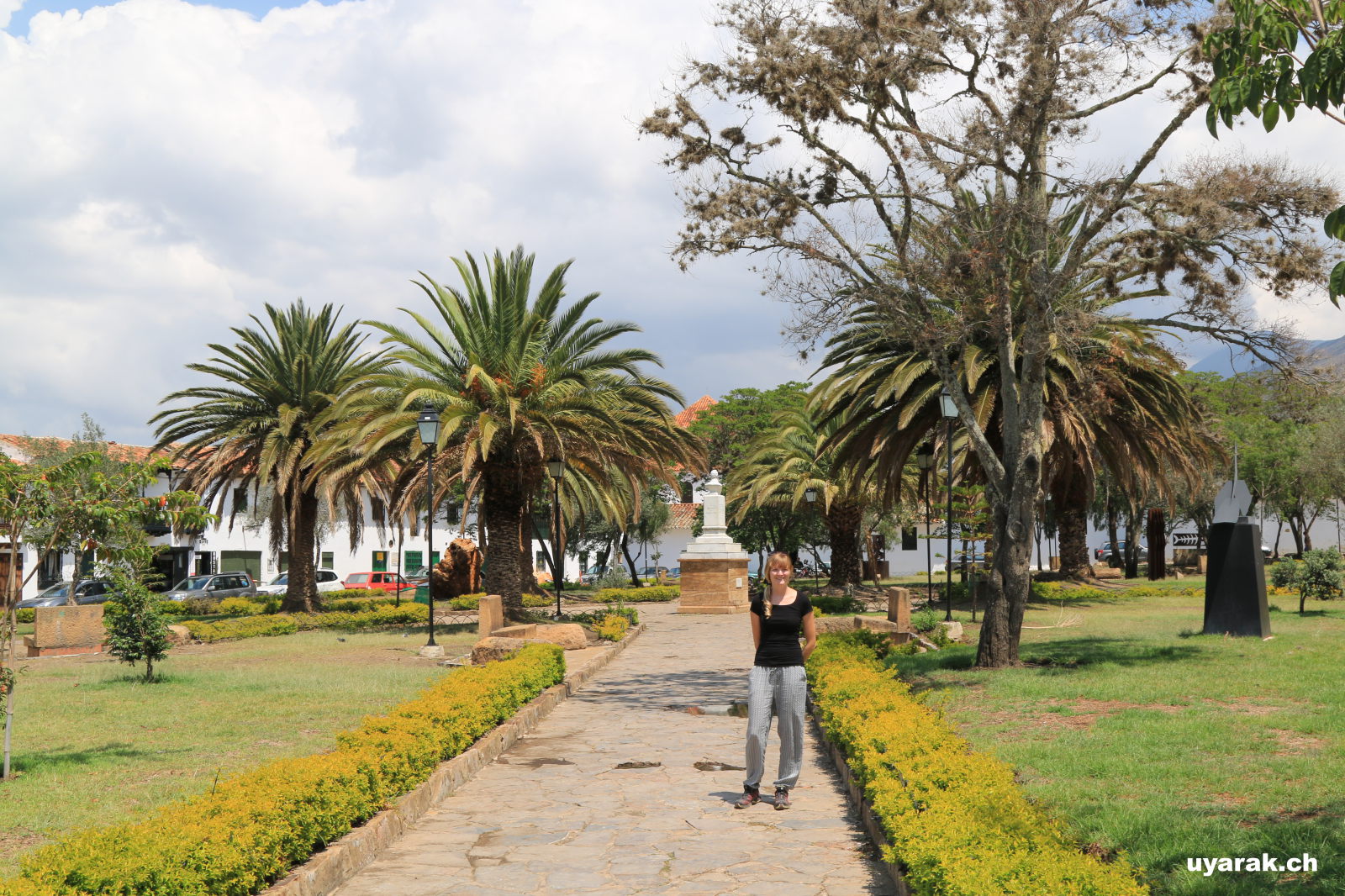 Die Reiselust ist es auch welche uns am nächsten Tag aus den Federn lockt. Das Städtchen Villa de Leyva soll unglaublich viel Charme haben. Wir spazieren in die Stadt und sind sofort angetan. Bunte Blumen vor weissem Verputz, ein kleiner Park mit grünen Palmen und dann die Ruhe und Gelassenheit welche wir noch in keiner anderen Stadt so gespürt haben. Einfach wundervoll.