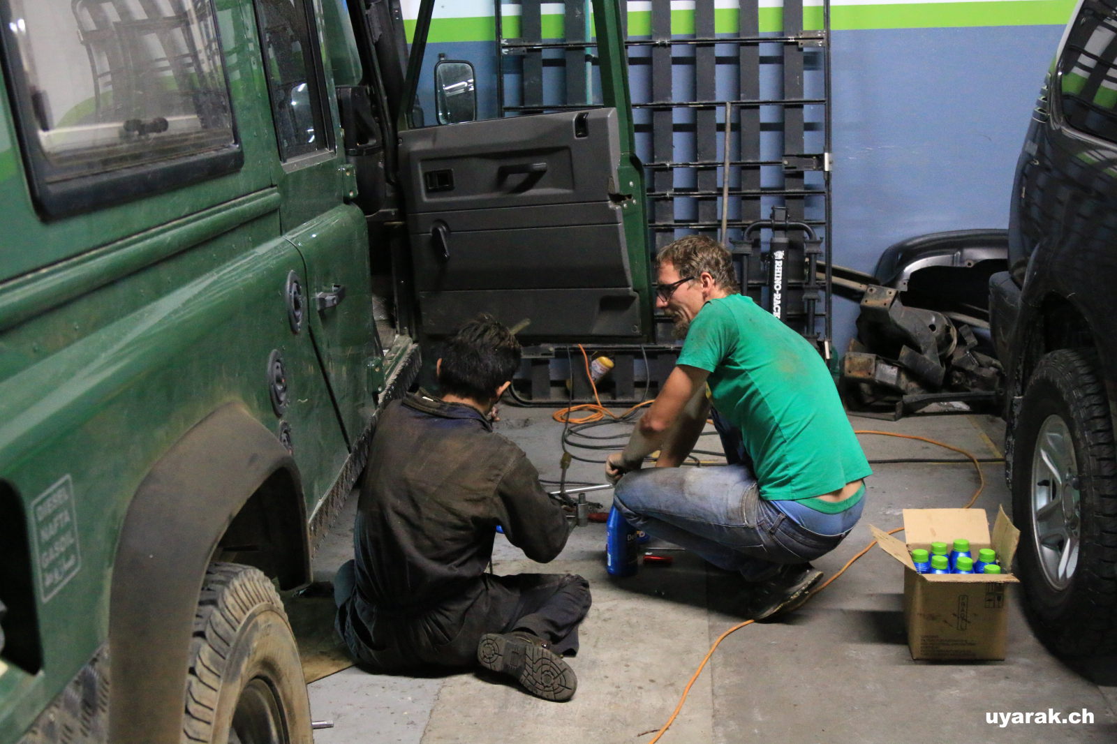 Seit etwas mehr als einem Monat haben wir ein "lustiges Geräuscheraten" bei der täglichen Landyfahrt. Da der unbekannte KLONK immer lauter und häufiger ertönt müssen wir uns nun endlich einmal darum kümmern. Deswegen auch der zweite Besuch in Bogotá wo wir die Werkstatt Iguana 4x4 aufsuchen. Hier verbringen wir ganze drei Tage (und Nächte) in der Garage. Das Geräusch wird lokalisiert und das Verteilergetriebe ausgebaut. Anschliessend zum Land Rover Spezialisten gebracht und am nächsten Tag wieder eingebaut. Siehe da, alles funktioniert wieder und die ganzen Sorgen waren umsonst!