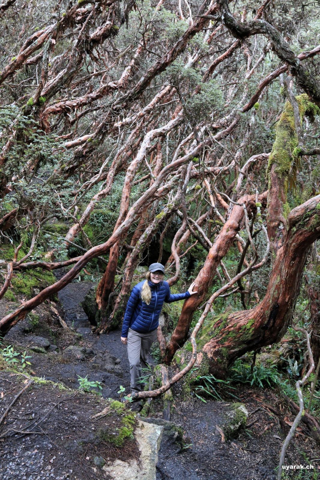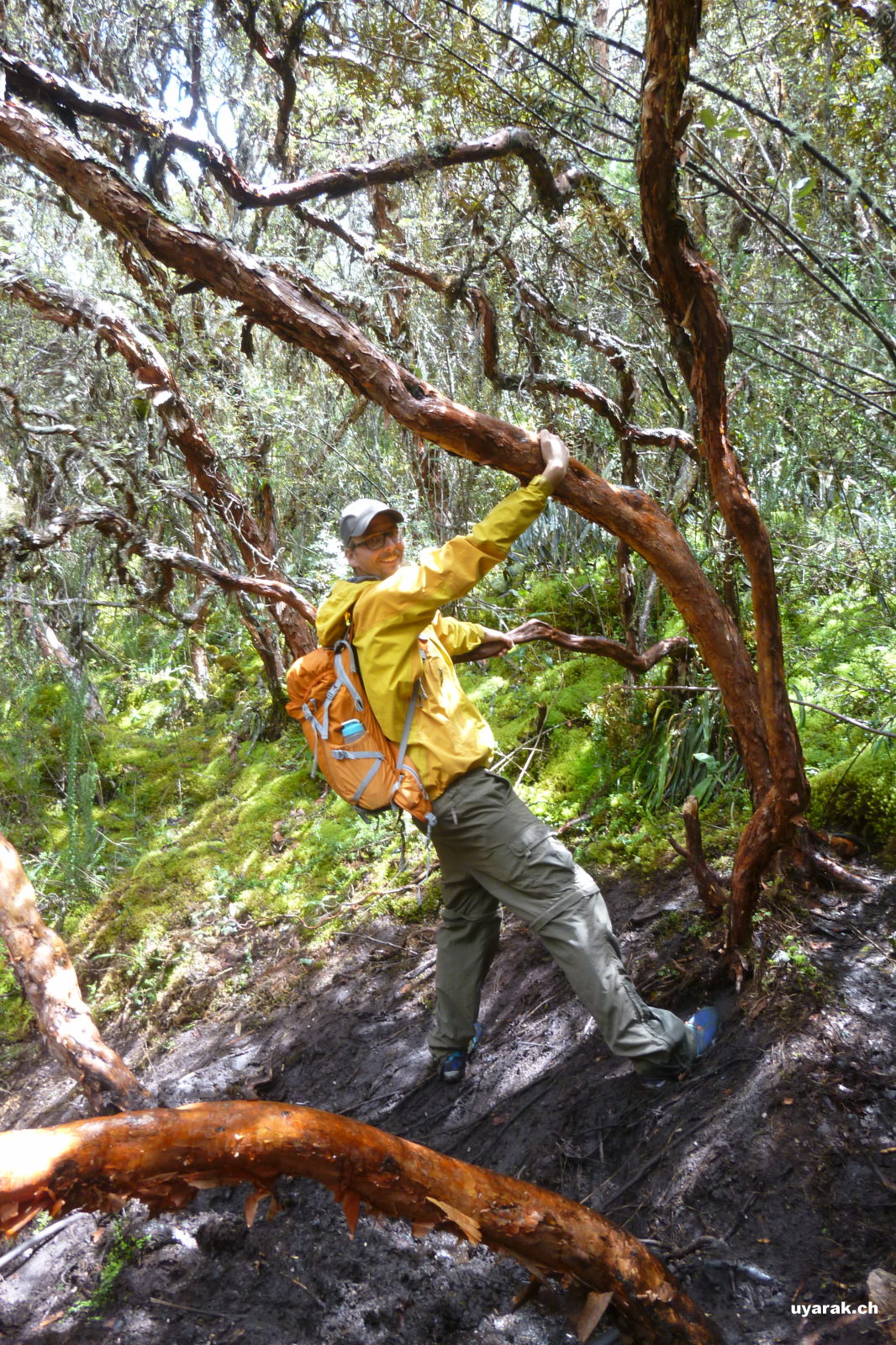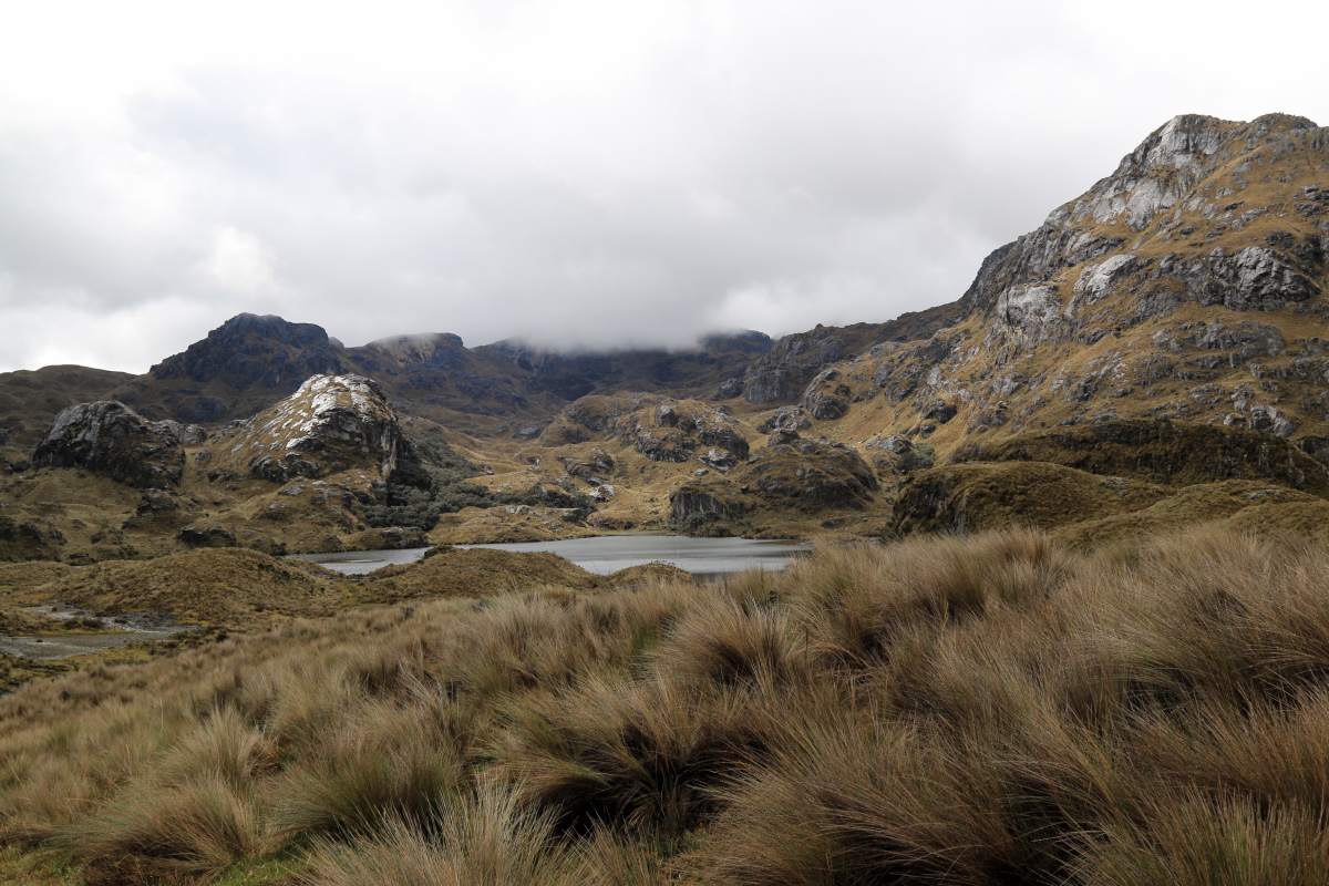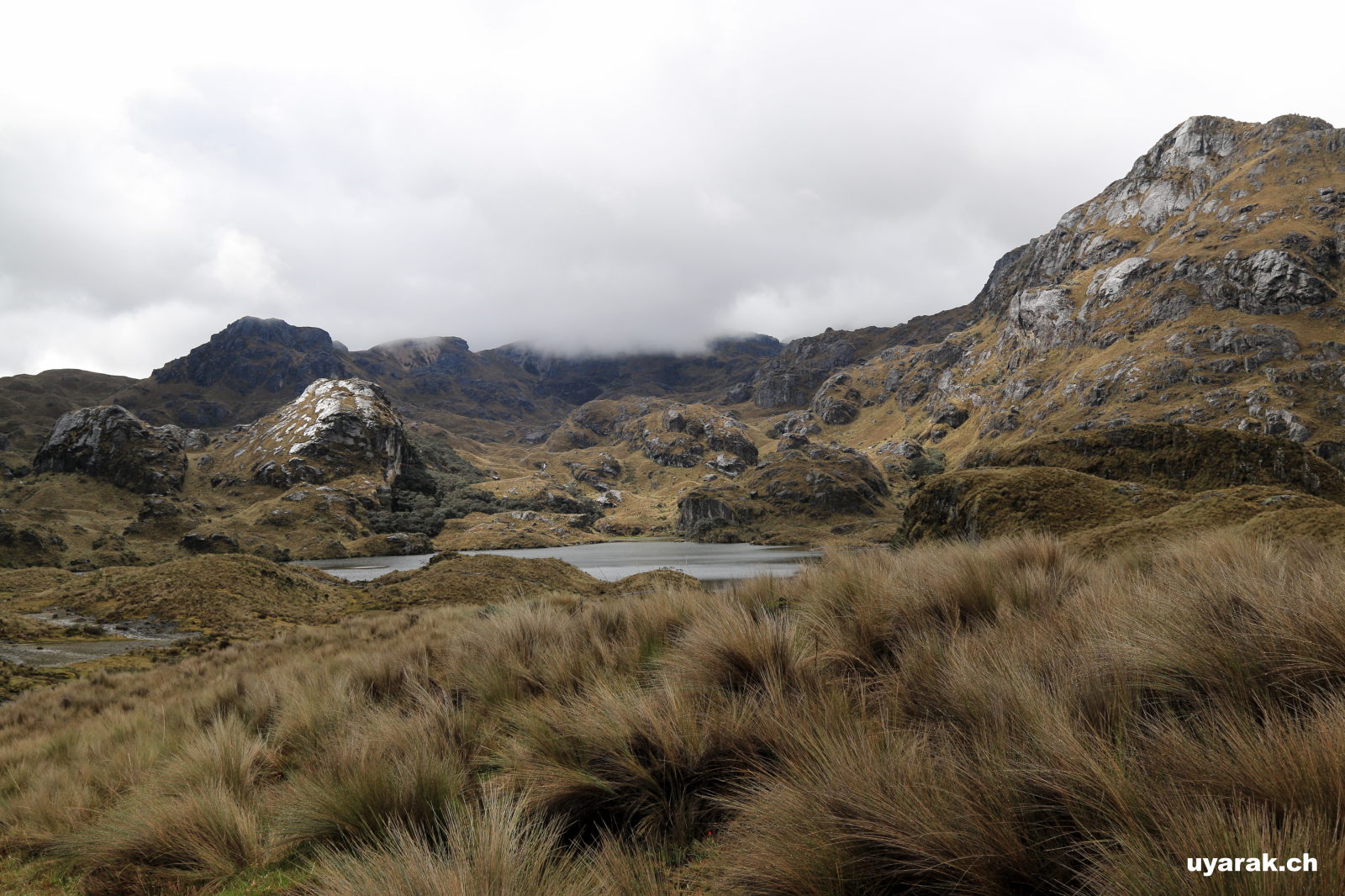 Nach der Stadterkundung lockt uns die Moorlandschaft des Parque Nacional Cajas. Zur Mittagszeit erreichen wir unseren Schlafplatz welcher inmitten der 4000 Meter hohen Bergwelt liegt. Das Wanderfieber packt uns sogleich und wir marschieren los. Obwohl der Himmel bewölkt ist und in der zweiten Hälfte ein heftiger Regen einsetzt geniessen wir die lustige Rutschpartie. Wir wandern vorbei an unzähligen Seen und klettern durch bezaubernde Waldstücke. Baumrinden welche im Licht rot schimmern und ganz geschwungene Formen vorweisen.