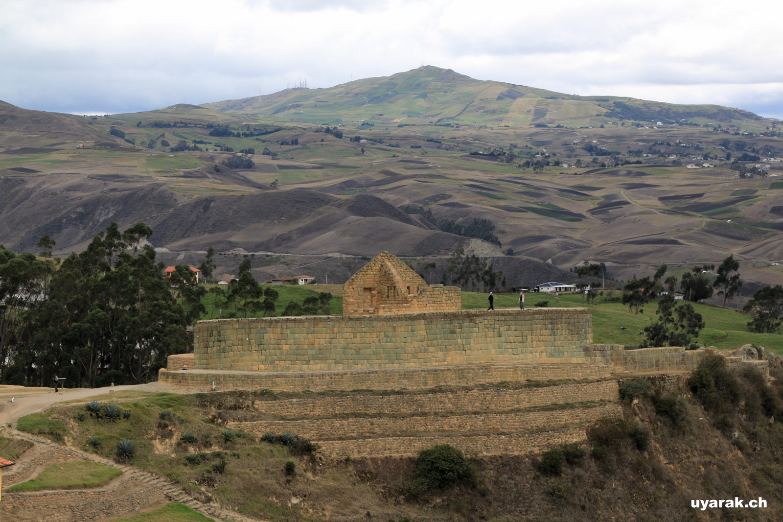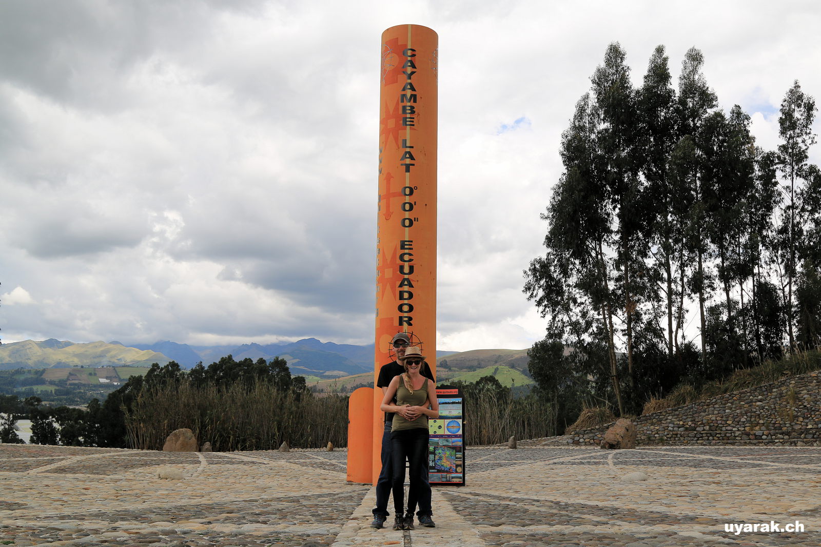 Nach 356 Reisetagen erreichen wir um die Mittagszeit den Äquator. Da wo der Pan-American Highway diesen überquert wurde eine Sonnenuhr errichtet - El Reloj Solar Quitsato. Nur zweimal im Jahr steht die Sonne exakt über dem Äquator, die restliche Zeit verläuft sie entweder südlich oder nördlich davon. Am 21. März und am 23. September steht die Sonne somit zur Mittagszeit genau senkrecht über der Sonnenuhr und wirft dadurch für einmal keinen Schatten. Immer wieder wurden in Ecuador bis zu 1000 jährige Plätze gefunden, welche damals zur Himmelsbeobachtung genutzt wurden. Heute suchen Forscher systematisch nach solchen Stätten und werden regelmässig fündig.