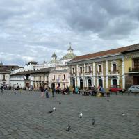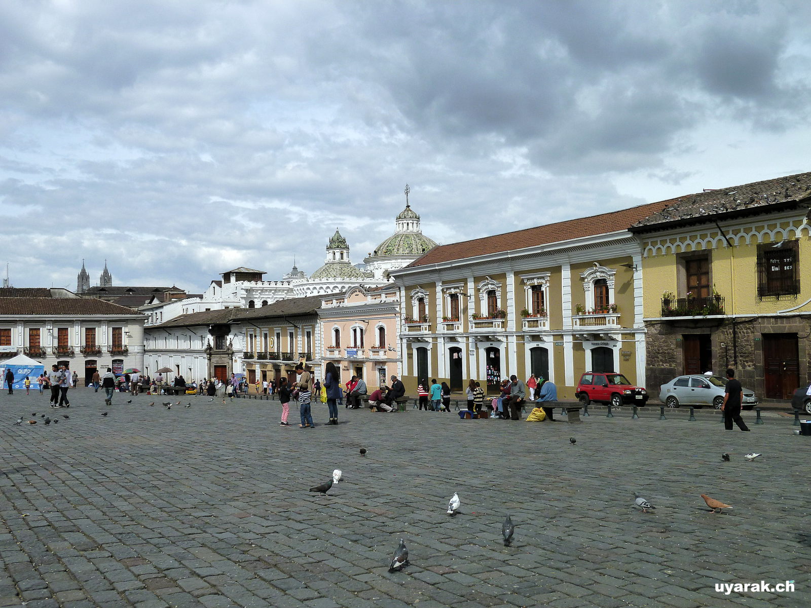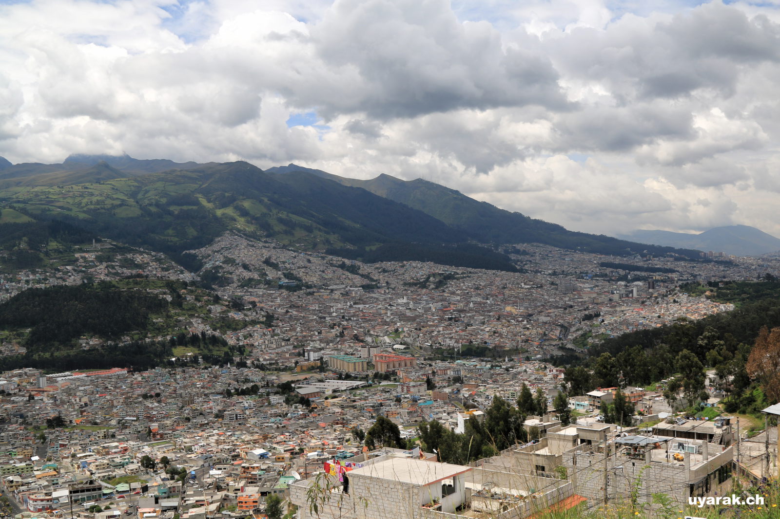 Eine vierspurige Autobahn führt uns direkt in die Hauptstadt von Ecuador, nach Quito. Die Hoffnung auf eine Umfahrungsstrasse haben wir schon längst aufgegeben und so kämpfen wir uns mitten durch die Stadt. Einige Schweissperlen später steht unser Dicke hinter einem 5 Meter hohen Zaun bei Gerd im Vorgarten des Hostal Zentrum. Gerd ist mit 73 Jahren nach Ecuador ausgewandert und hegt und pflegt seit nun bereits 12 Jahren sein Hotel mit Biergarten. Vorerst gefällt uns Quito gar nicht. Eine Stadt welche das ganze Rheintal bedecken würde. Die kleinen Häuser so nahe aneinander das man beim Nachbarn einen Blick unters Kopfkissen werfen kann.