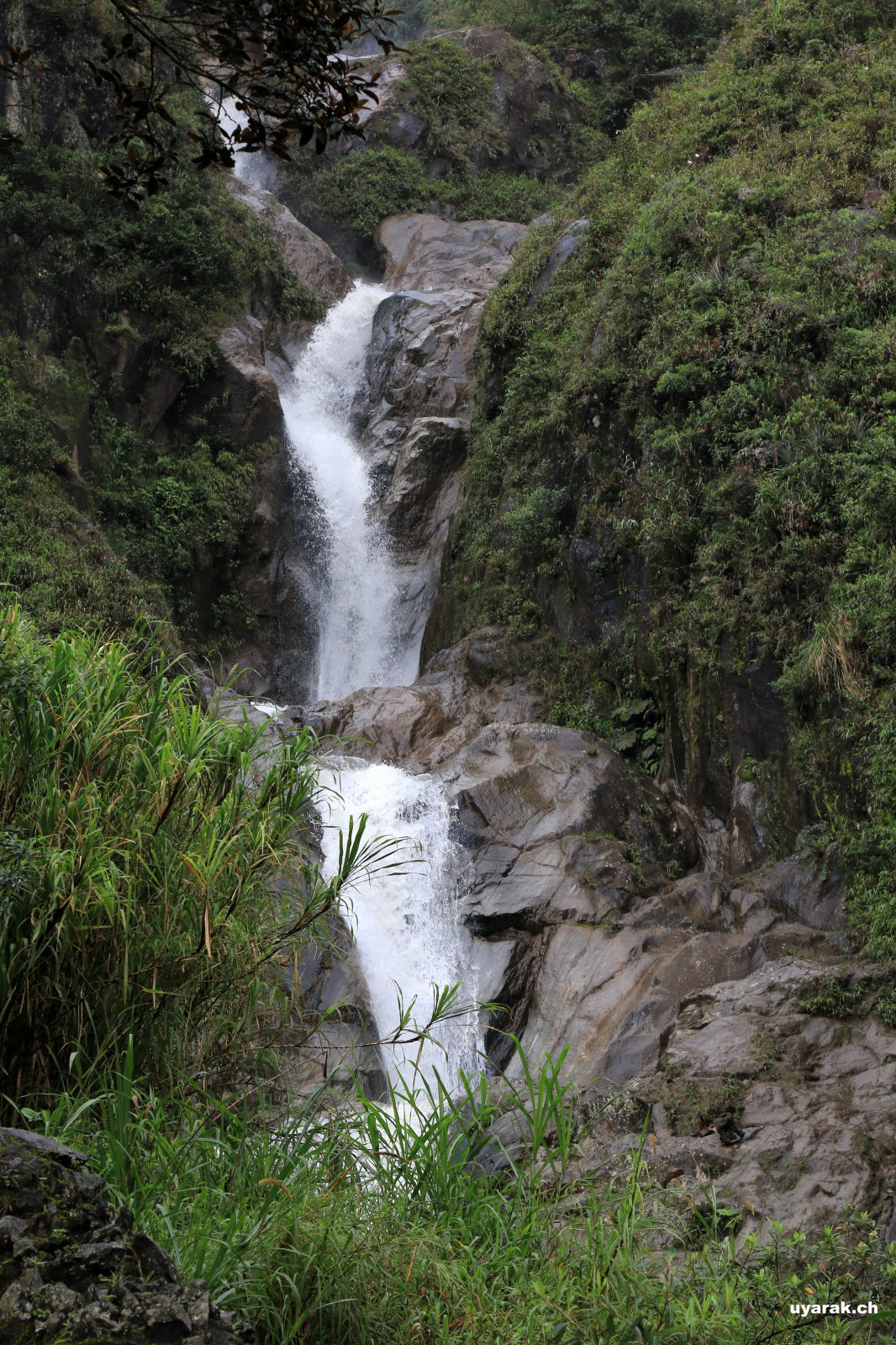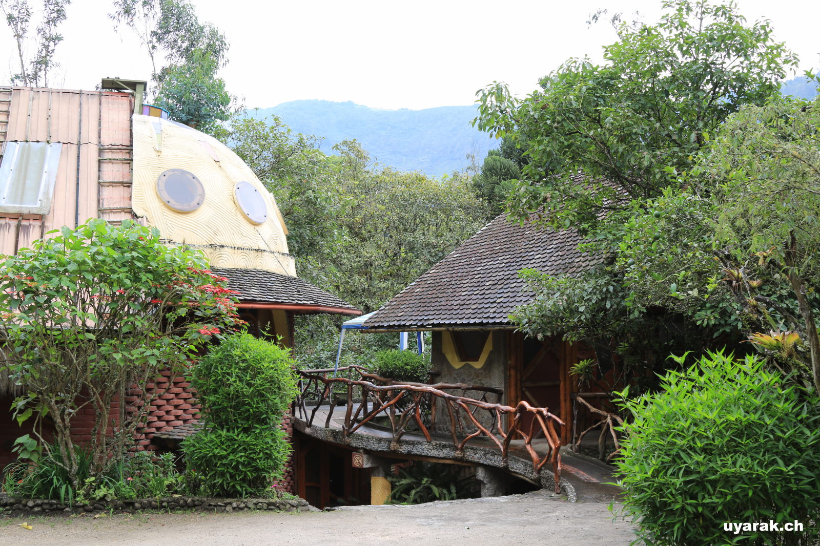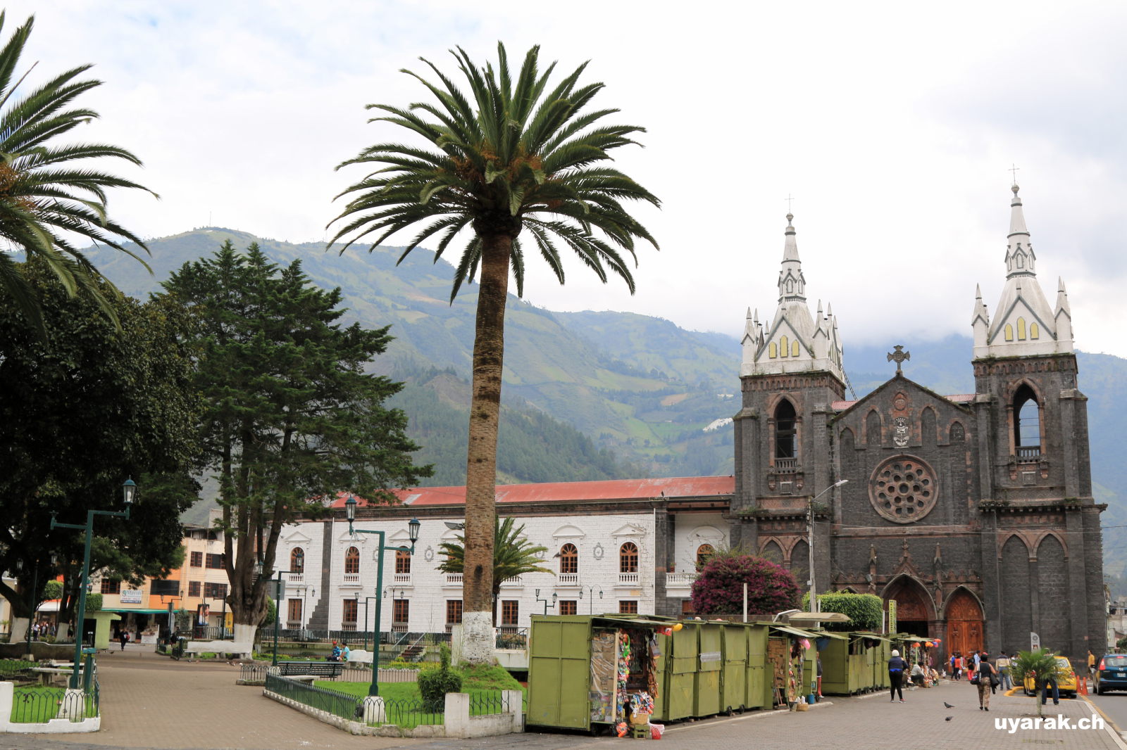 Auf der Suche nach Ruhe und Gelassenheit fahren wir Richtung Ambato und biegen da nach Osten ab. Weit hinten im Tal befindet sich das bekannte kleine Dörfchen Baños de Agua Santa wo sich angeblich alle Backpacker wohl fühlen sollen. Und so geht es auch uns. Eingenistet in der kunstvoll gestalteten Finca Chamanapamba geniessen wir Deutsche Küche und gute Gesellschaft. Das Dorf Baños de Agua Santa ist wirklich wunderschön gelegen. Es liegt am Hang des aktiven Vulkans Tungurahua mit Blick auf das grüne Pastaza-Tal, im Rücken unzählige grandiose Wasserfälle und zwei wärmende Thermalbäder.