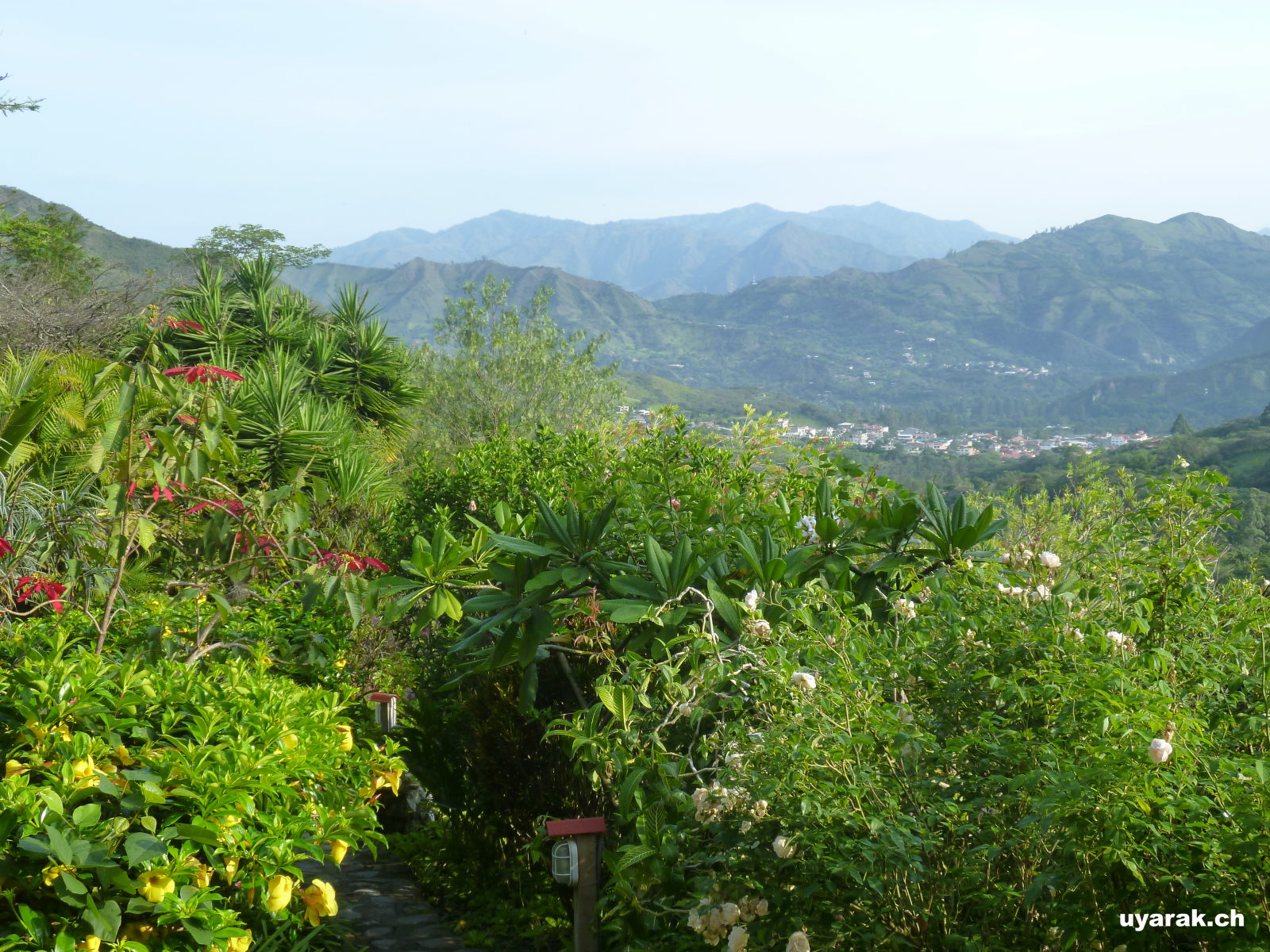 Nach Vilcabamba ins Tal der Hunderjährigen fahren wir nicht etwa wegen den alten Leuten. Nein, diese Region soll auch landschaftlich ein besonderes Juwel sein. Weshalb sonst würden es die Leute solange aushalten? Und wirklich - hier finden wir Ecuador so vor, wie wir es uns in Gedanken vorgestellt hatten. Eine Berglandschaft welche sich ins saftigste grün hüllt - Bäume, Büsche mit bunten Blumen, Bananenblätter. Bei der Hosteria Izhcayluma gibt es jeden Morgen kostenlose Yogastunden, Massagen können ebenfalls gebucht werden. Da fühlen wir uns doch gleich wie in den Ferien.