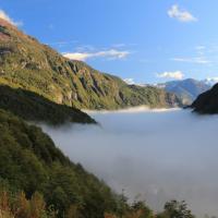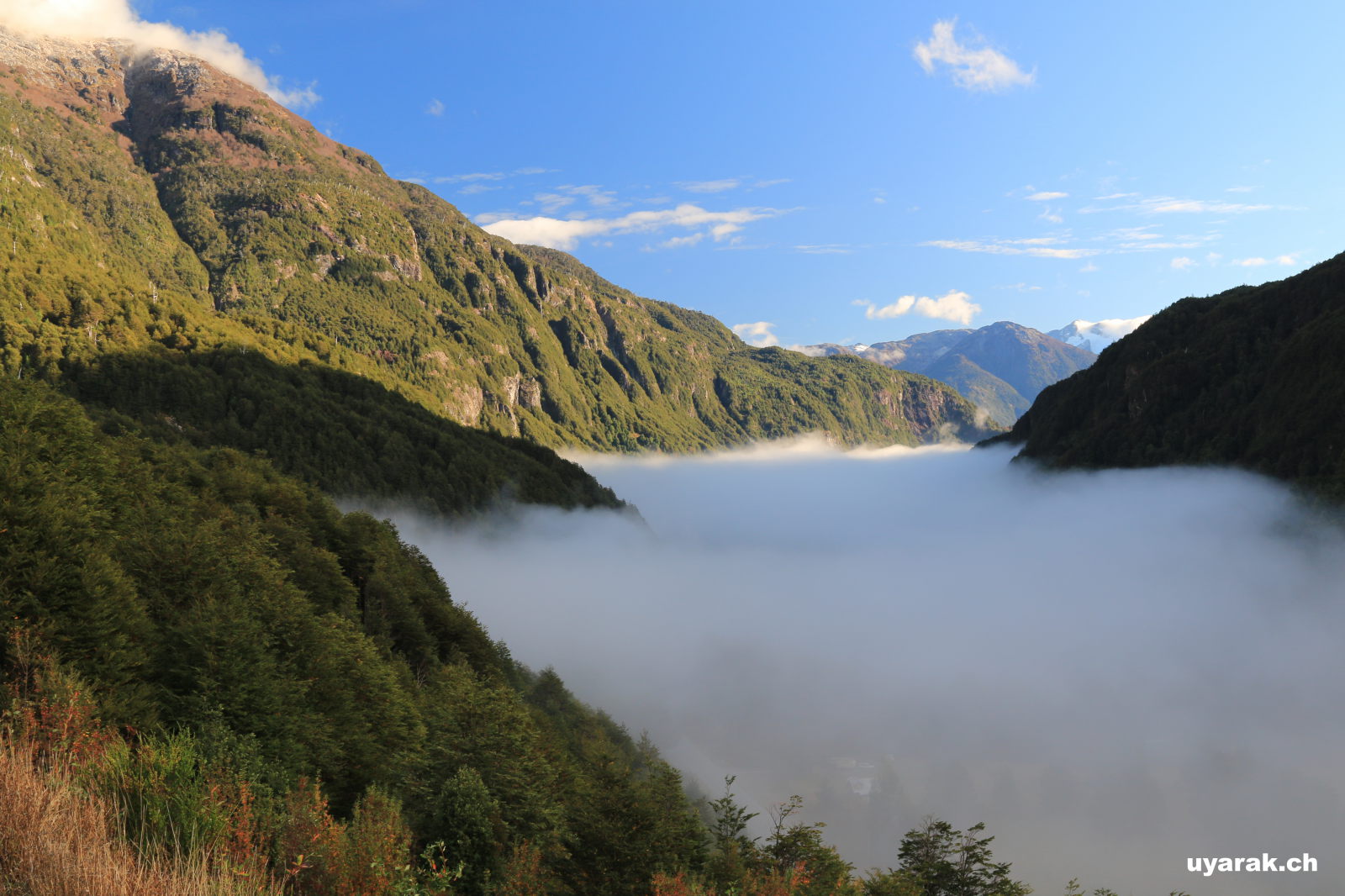 Rund dreissig Stunden nachdem die Fähre in Puerto Montt abgelegt hat, erreichen wir die kleine Hafenstadt Puerto Cisnes. Leichter Morgennebel hängt in der Luft als wir zusammen mit ein paar Lastwagen von der Fähre rollen. Über eine kurze Schotterpiste geht es nun zur Ruta 7, besser bekannt als Carretera Austral. Die Strasse schlängelt sich durch nebelverhangene Täler, erklimmt aber auch immer wieder kleine Hügel und Pässe. Die wenigen Höhenmeter reichen jeweils bereits aus um dem tristen Grau zu entkommen und die nur knapp über dem Horizont stehende Sonne zu sehen. Nach wenigen Stunden taucht dann plötzlich mitten im Nirgendwo eine Stadt auf - Coihaique. Die Stadt ist ein wichtiger Versorgungsposten für die nur schwer erreichbare Region. Auch wir stoppen nur kurz um ein paar Sachen zu erledigen und Diesel aufzufüllen.