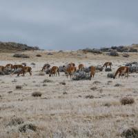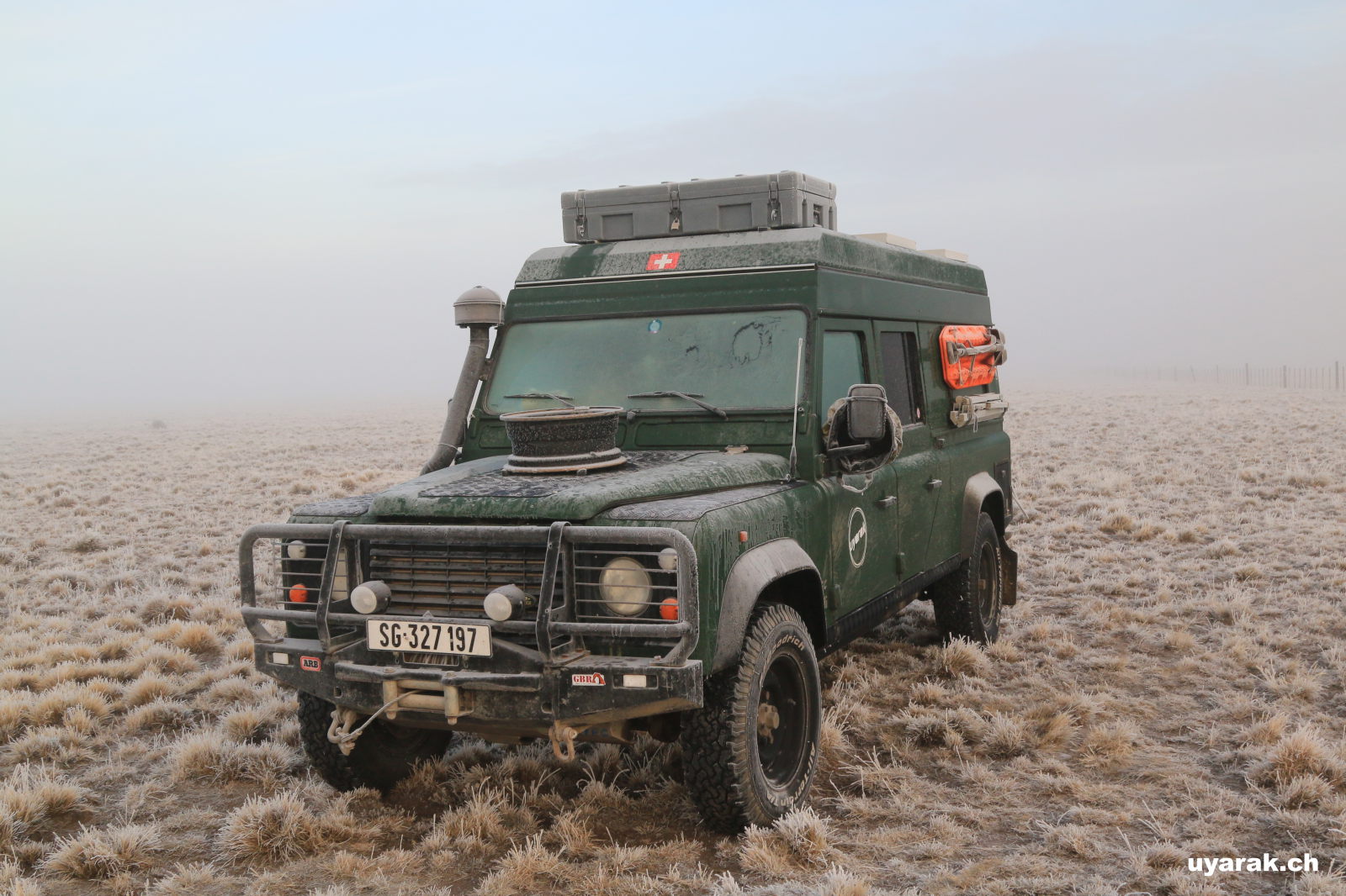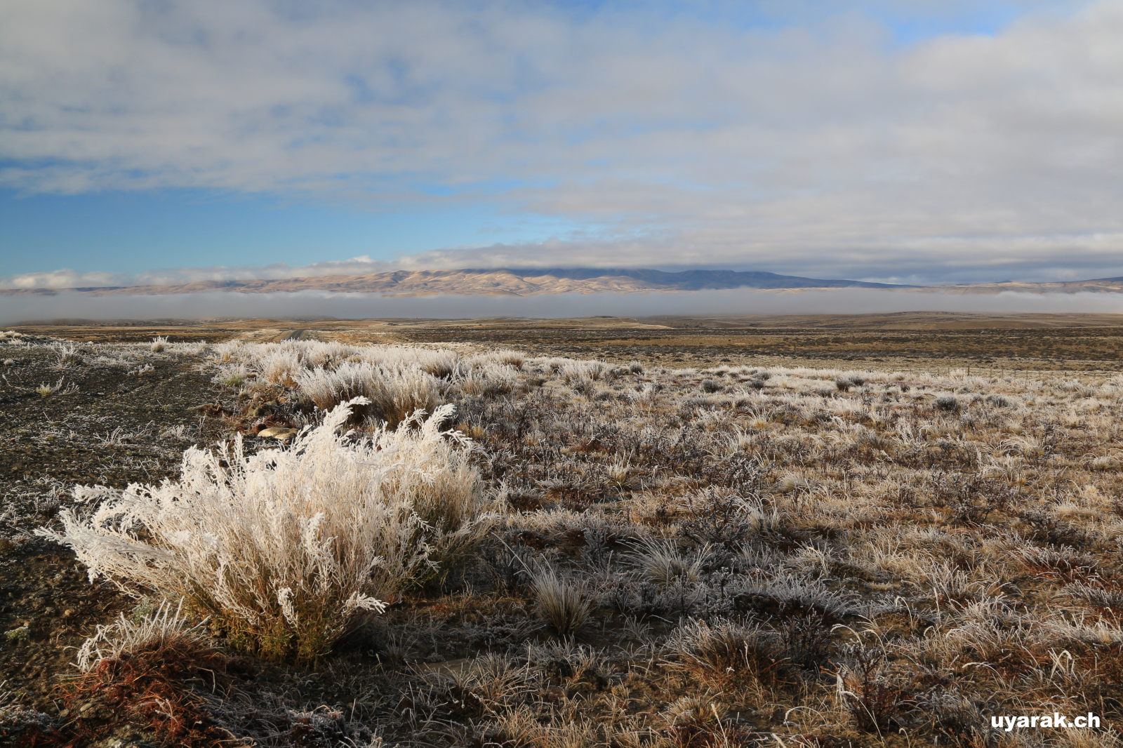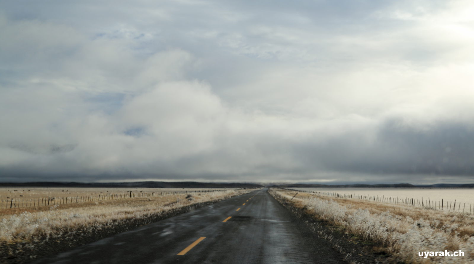 Bei der kleinen Ortschaft Tapi Aike (OK, eigentlich ist es nur ein Polizeiposten, eine Tankstelle und zwei Häuser) verbringen wir unsere vorläufig letzte Nacht in Argentinien und die bisher kälteste. Am Morgen sind die Zahnbürsten steinhart gefroren und trotz Motorstandheizung braucht es nach dem Losfahren eine ganze Weile bis wir keine weisse Wolke mit unverbranntem Diesel mehr hinter uns herziehen.