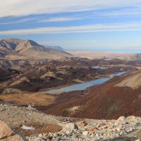 Nach fast 100 km haben wir es dann geschafft, wir sind auf der legendären Ruta 40 - der Argentinischen Route 66. Doch bevor unser Road-Trip in Argentinien weitergehen kann brauchen wir etwas Bargeld. Schnell finden wir in Perito Moreno zwei Bankomaten, doch beide wollen partout kein Geld ausspucken. Zum Glück haben wir aber noch ein paar US-Dollar zum Wechseln, wenn morgen die Banken wieder öffnen. Nach einer ruhigen Nacht an einem ausgetrockneten See direkt neben dem Städtchen sind wir zurück bei der Bank und stehen geduldig in der Schlange. Wir sind nicht die einzigen Touristen, die Argentinische Pesos brauchen. Eine junge Amerikanerin kommt mit dem Bus aus El Calafate weiter im Süden und erzählt uns, dass da unten kein einziger Bankomat funktioniert - na super. Ihre Chilenischen Pesos kann Sie leider auch hier auf der Bank nicht eintauschen und so helfen wir aus und tauschen ein paar der eben erst ergatterten Pesos ein. Sie ist überaus dankbar, als wir sie dann auch noch bis zur Bushaltestelle mitnehmen.