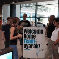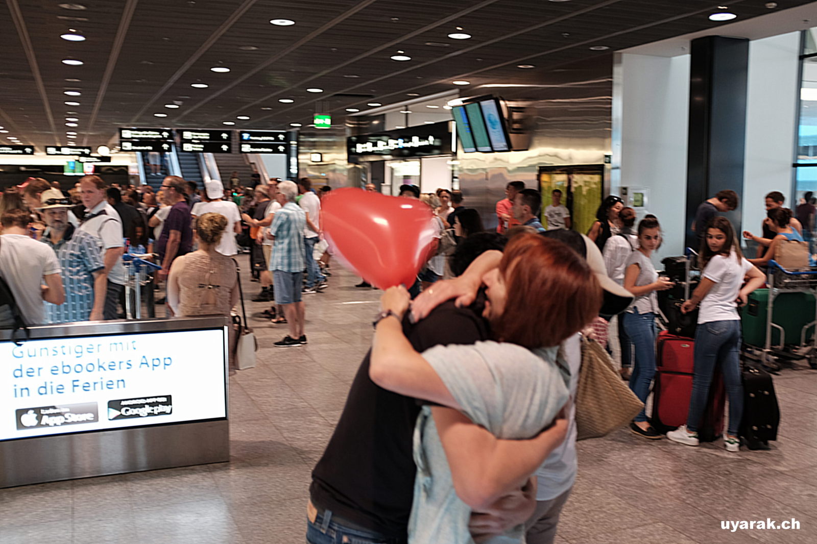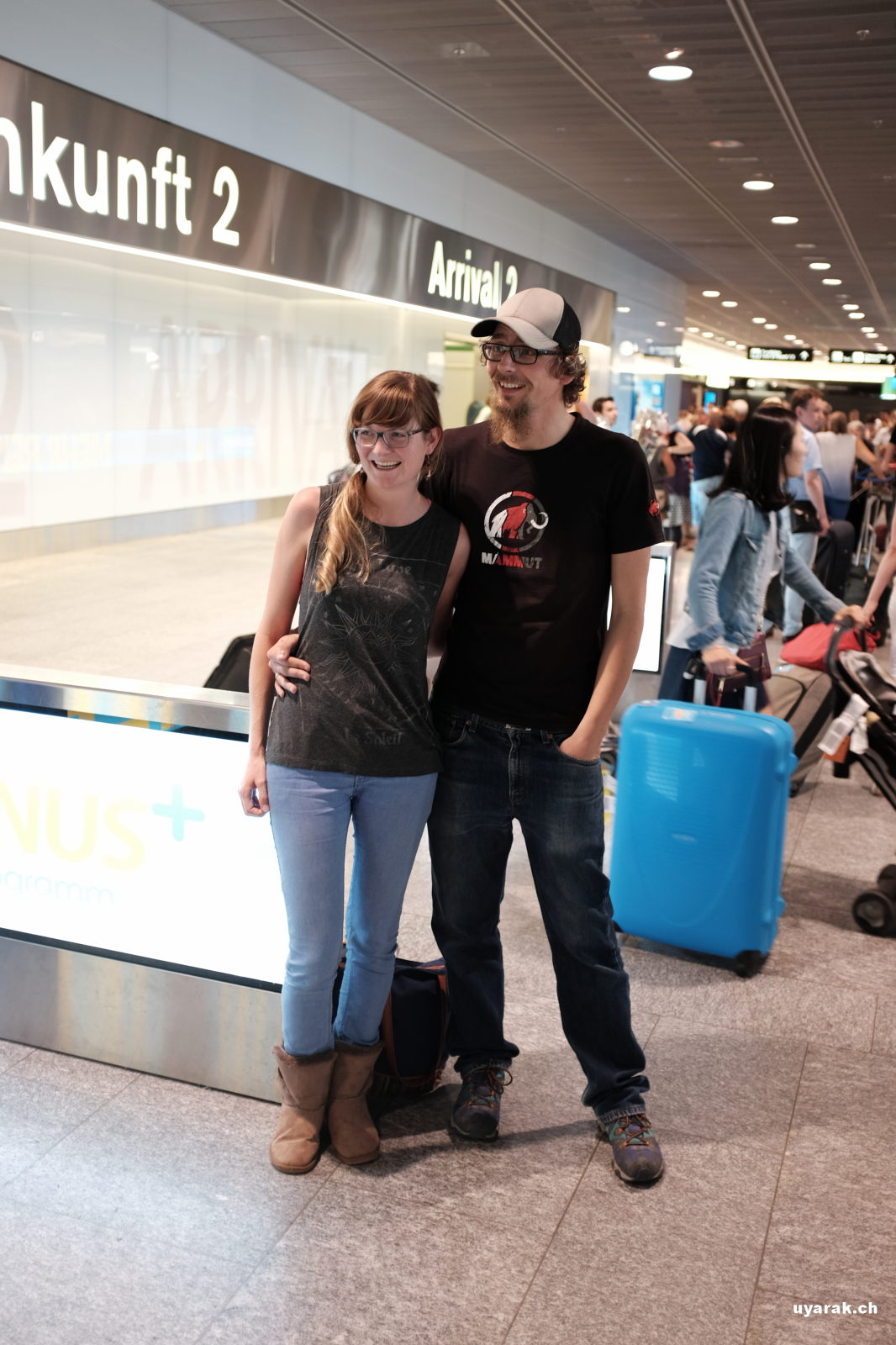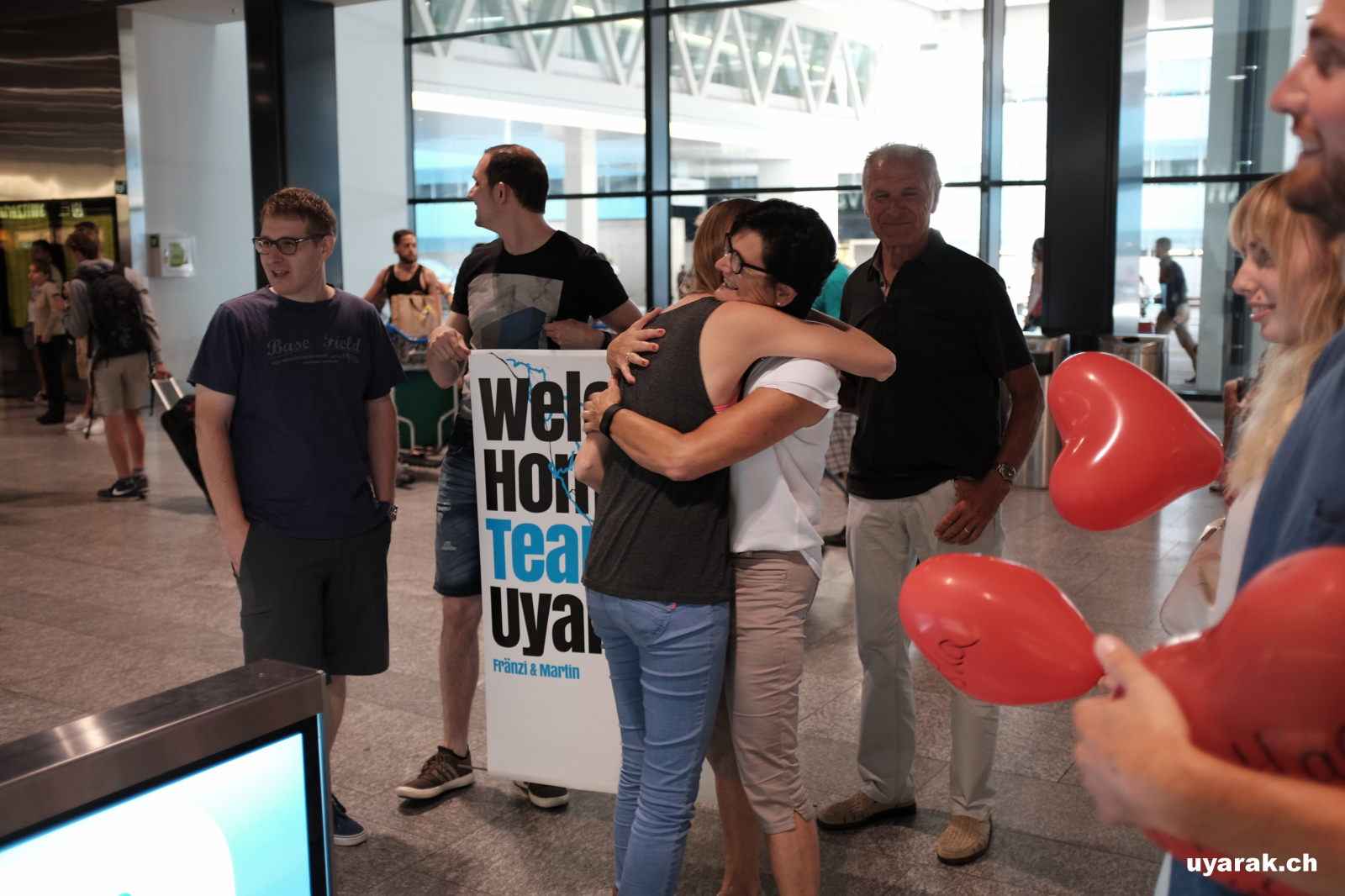Die British Airways bringt uns mit einem Zwischenstopp in London nach Zürich. Bereits der Anblick der Schweizer-Alpen aus der Vogelperspektive lässt uns Tränlein in die Augen steigen. Noch auf der Rollbahn entdecken wir die unzähligen Flugzeuge der Swiss - ja das muss die Schweiz sein. Das Gepäcksband lässt uns dann noch das letzte mal zappeln bevor wir endlich zum Ausgang steuern. Einen Blick in die Menge der Wartenden und sogleich sehen wir unsere Familien und Freunde mit einem Plakat - Welcome Home, Team Uyarak - und Herzchen-Luftballons auf uns warten.